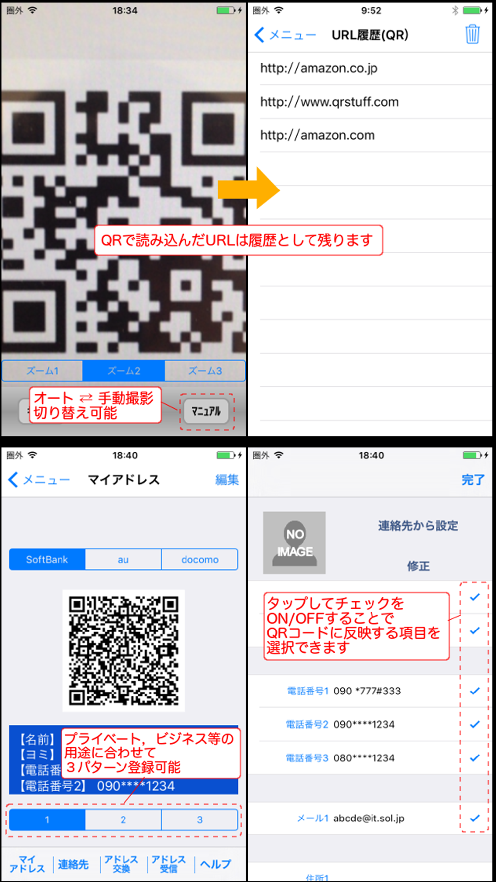 ■QRコードの読み込み(3G/iPod touchの場合はマクロレンズの使用を推奨)