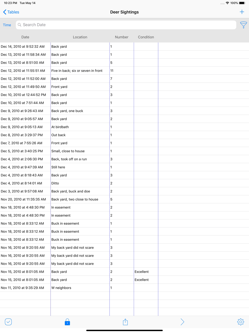 For example, if you have a bottle collection, you could make a table with these fields: Date Acquired, Bottle Type, Bottle Origin, Shape, Notes. Then whenever you add a new bottle to your collection, you can add a row to the table describing it.