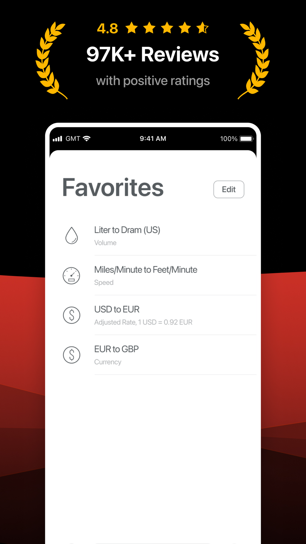 In GlobeConvert you can quickly create your favorites list of conversion units and then use it on the go. Do less and get a faster result!