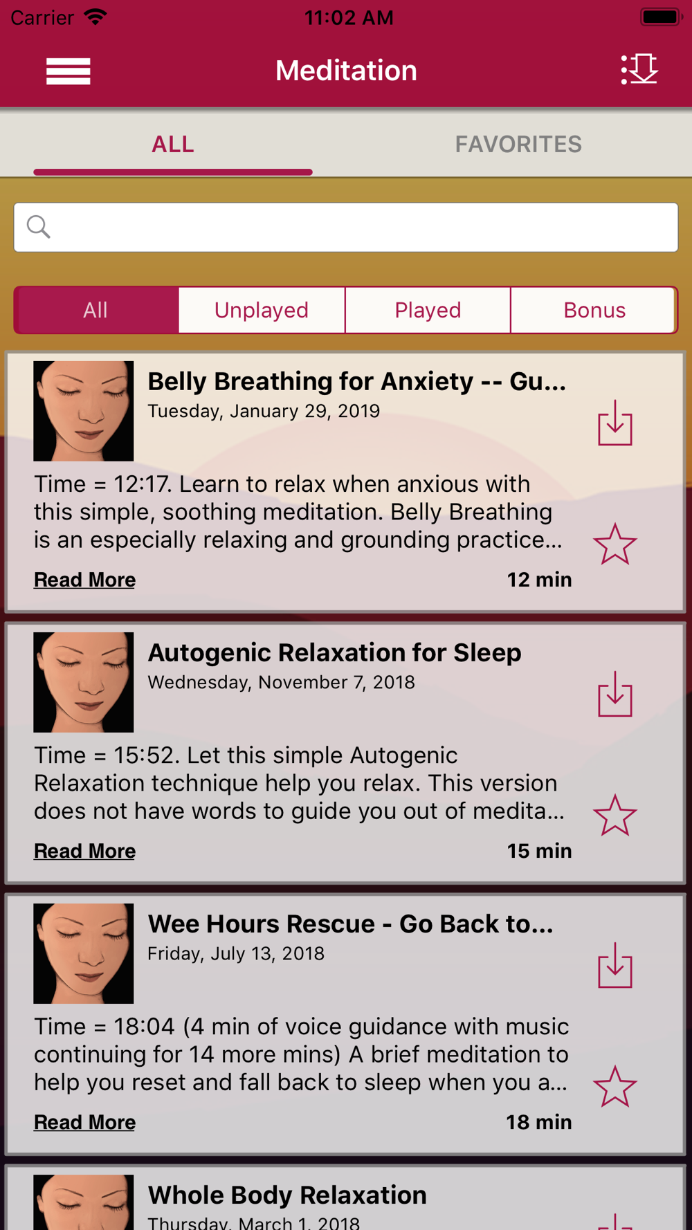 Bonus material includes extra tracks of Meditation Music and Comments and Tips on each episode. The meditations are voice-guided by meditation expert, Mary Maddux. Many are accompanied by beautiful, deeply relaxing music.