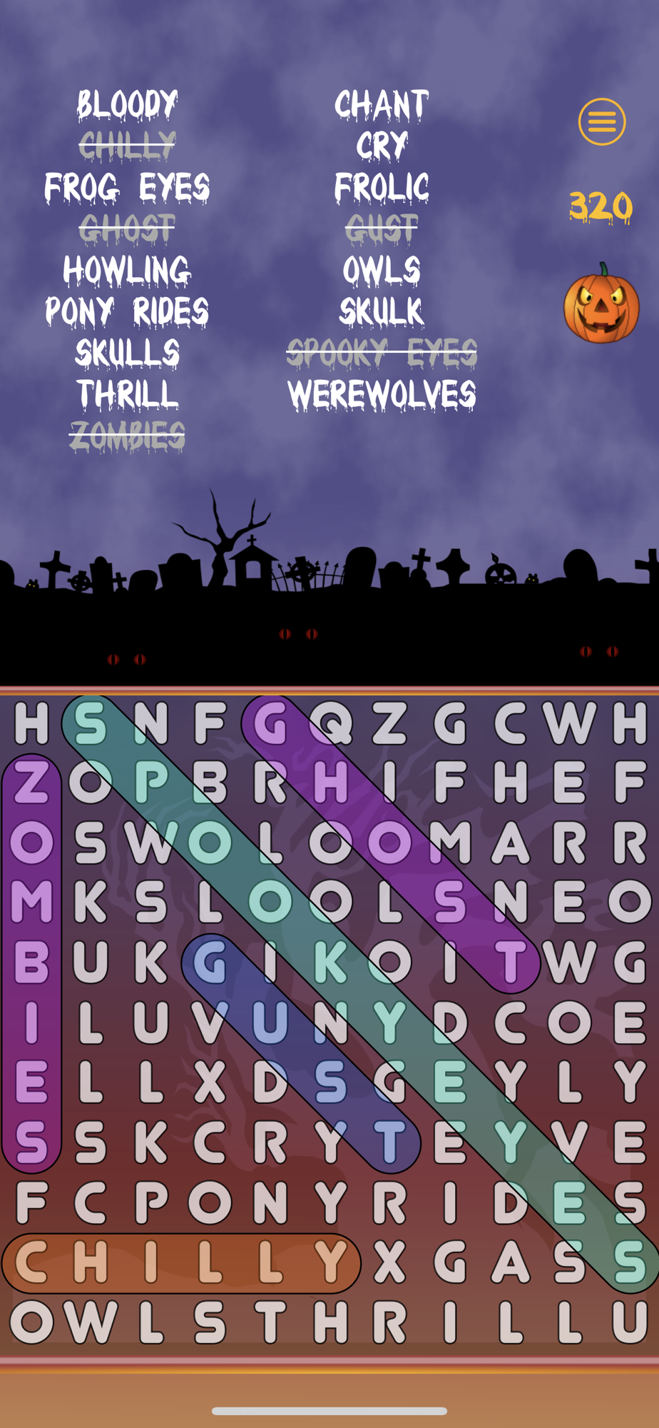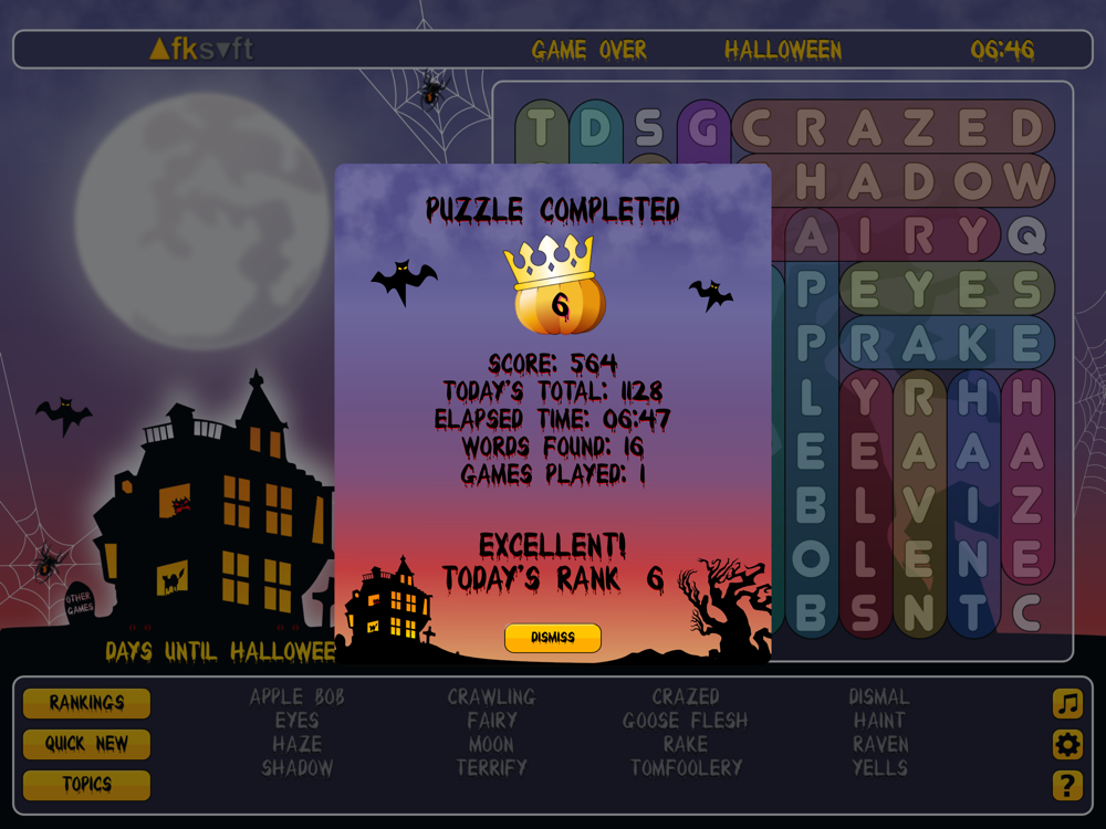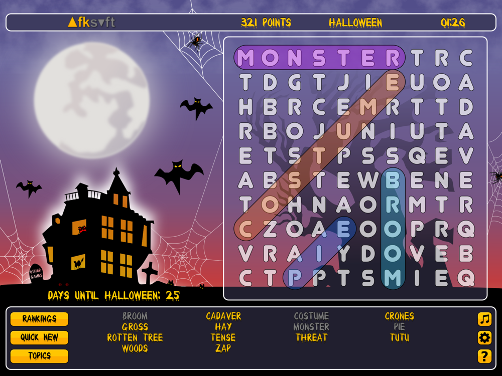 *** Solve countless puzzles in this special scary holiday edition of AFKSoft Word Search. With online rankings! ***