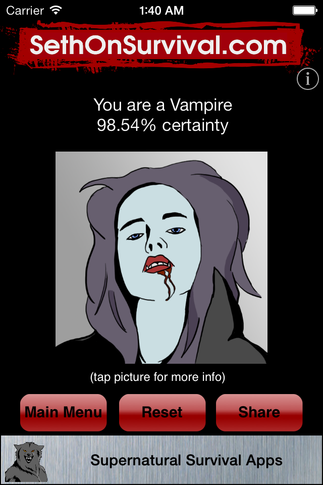 Use The Seth On Survival Monstrometer to scan and interrogate old friends and new acquaintances to determine if they are really supernatural beings in disguise and then learn how to deal with them. You can even scan yourself and link with others who share your supernatural condition.