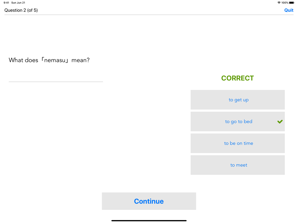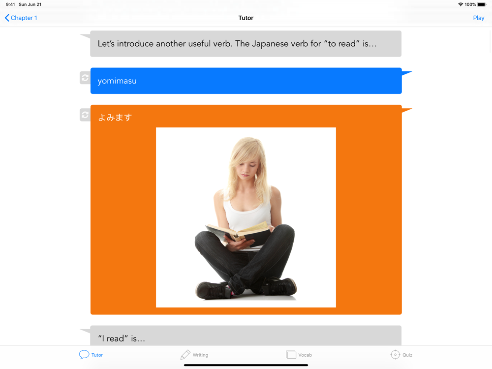 Unlike most other Japanese language apps which just have lists of vocabulary or flashcards, this app actually teaches you the basics of Japanese — grammar, pronunciation, the writing system, and the usage of words — using an effective and clear methodology which you will thoroughly enjoy! There is simply no better way of learning Japanese!