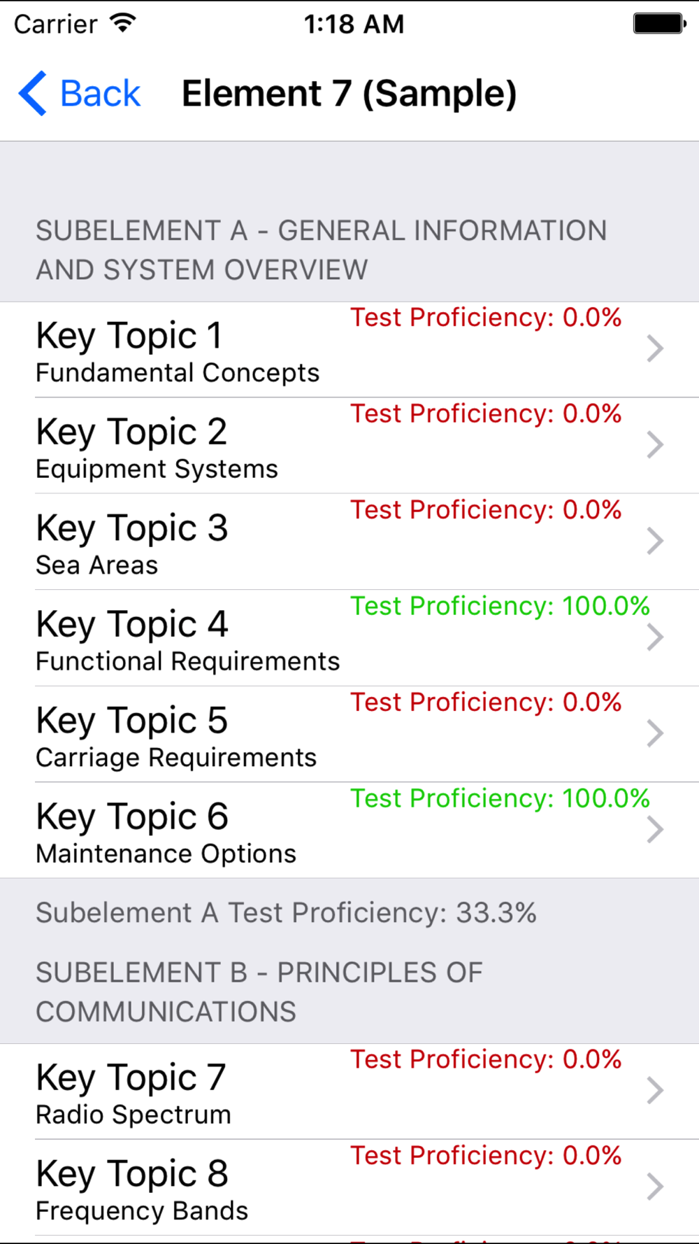 After completing your first practice exam, the question pool screen will display your proficiency in each question subelement/topic for all practice exams you have completed. This will help you determine what areas need further study!