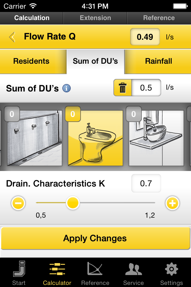 - selection list of common drainage fixtures (e.g. toilet, washbasin, etc.)