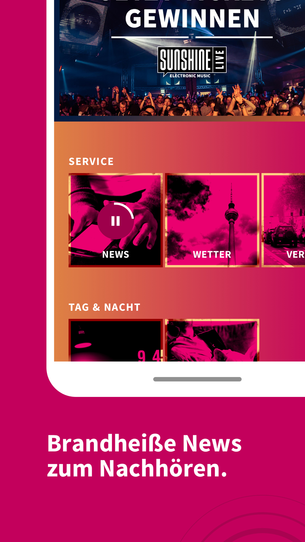 Sunshine live - das ist die App für alle Fans elektronischer Musik aus Mannheim, Berlin, München, Hamburg, Köln.