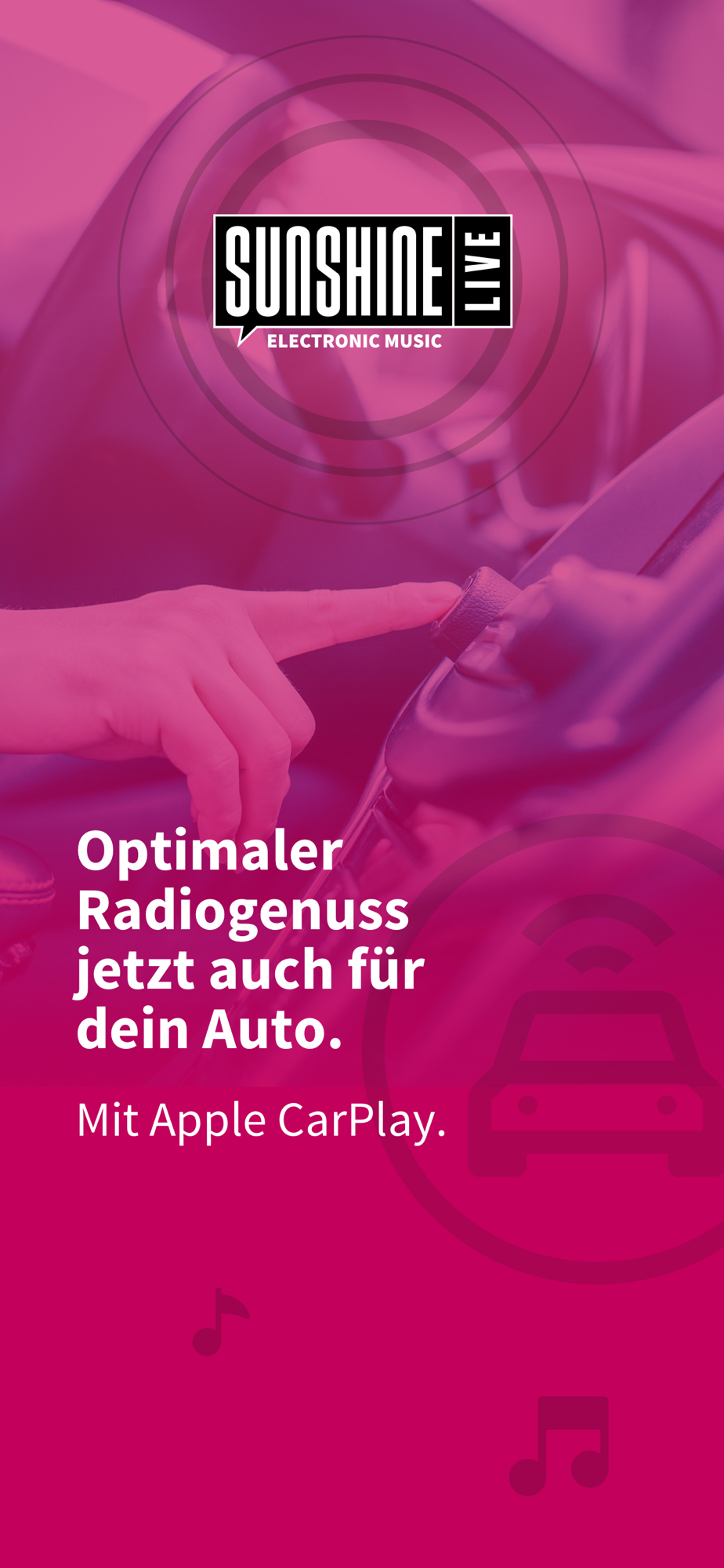 Mit der sunshine live-App bekommst du alles, was du von sunshine live kennst: den Radio-Live-Stream und alle weiteren Musikgenres und Festival-Sounds der elektronischen Musik: Von Chillout bis Hard. Von Trance bis Techno. Von Sets der Nature One bis zu den Tracks der angesagtesten Künstler auf dem Amsterdam Dance Event. Weit über 30 Channels warten auf dich. Und jetzt endlich: In einer auf einen Blick übersichtlichen Form und Struktur. Du willst den Klängen der Vergangenheit lauschen? Dann check die Channels unserer Zeitreise: 80er, 90er, Classics oder 90s Anthems. Dir ist nach Techno - jetzt findest du alles unter Techno & More: Techno, German Techno, Tech House oder die Sets der Time Warp. Dir ist nach Party & Hits - wir haben Sie. Genau wie harte Beats wie Hardstyle & Bunker-Techno. Alle Channels sind kostenfrei und in der App sofort verfügbar.