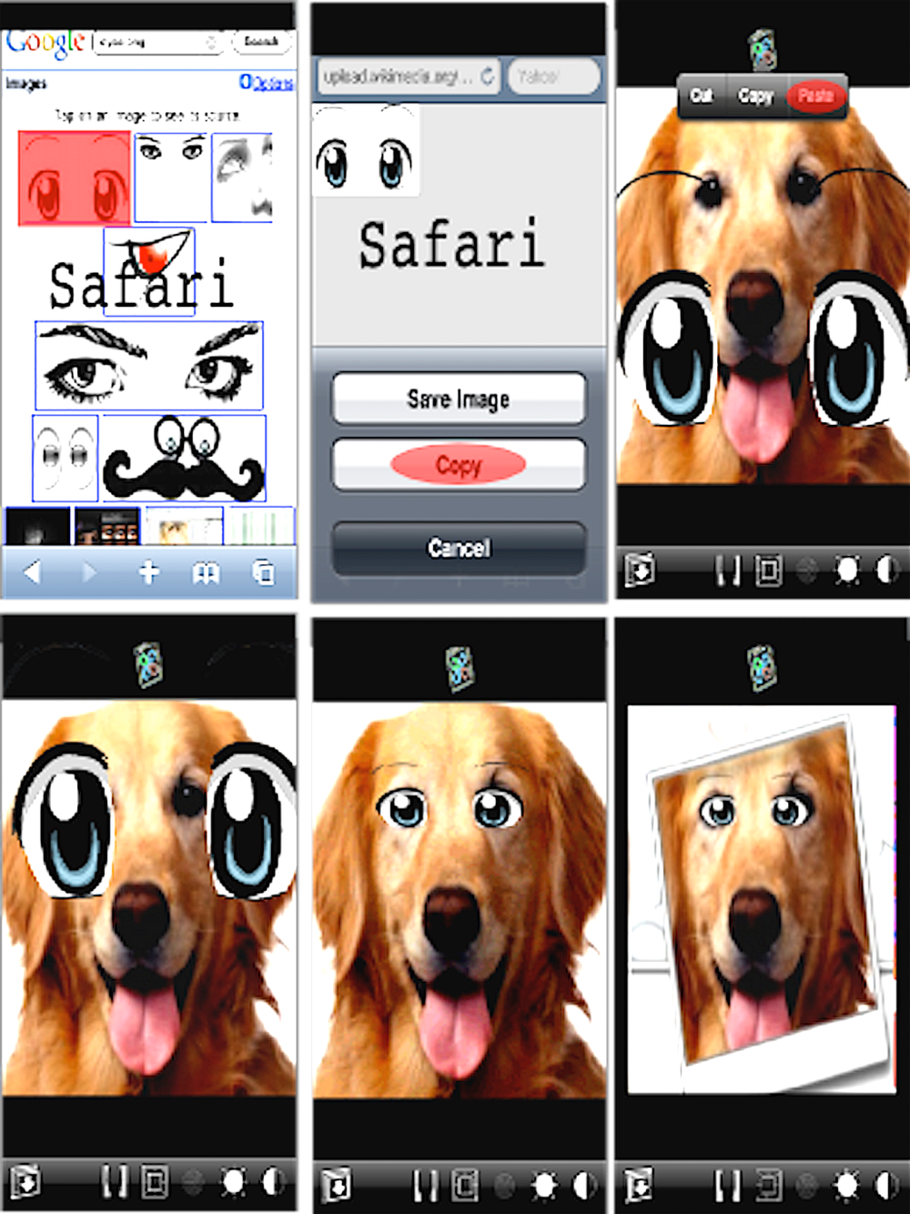 Paste support allows merging of images & clipart from the Internet into your photographs. Add photo frames, hats, flowers, ties, glasses, anything to your photos. Copy images from Safari to the clipboard and apply them to your