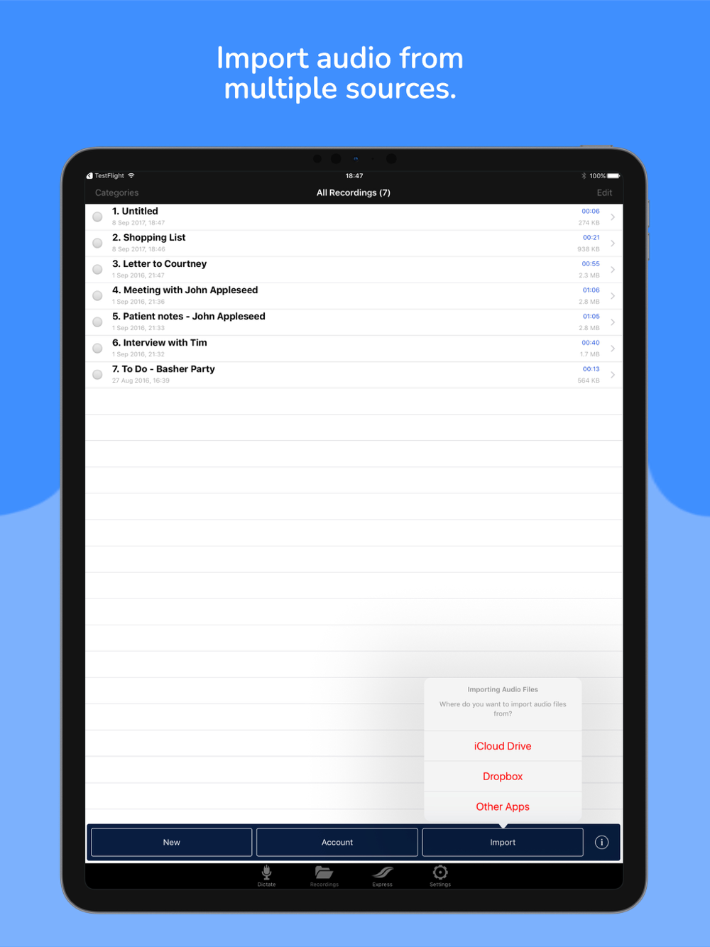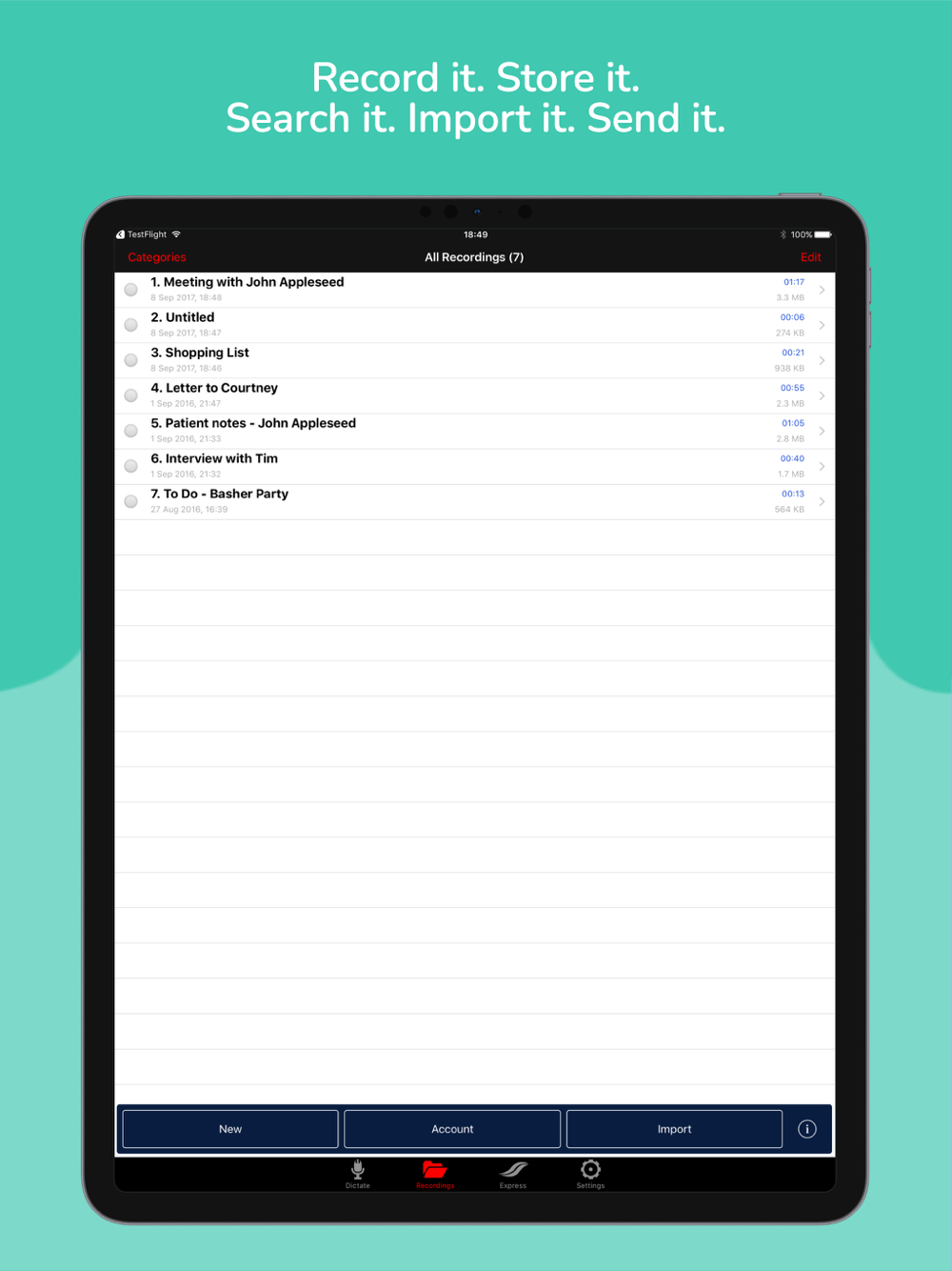 IMPORTANT: All users can record and edit audio files. To take advantage of the dictate2us transcription features, you will need to register within the app, which only takes 60 seconds!