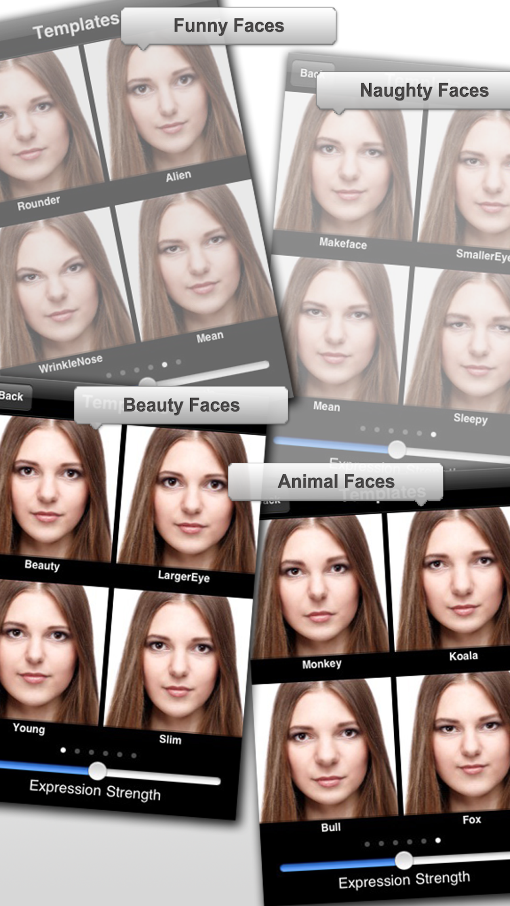 - Naughty faces: MakeFace, Kiss, Angry, Sleepy