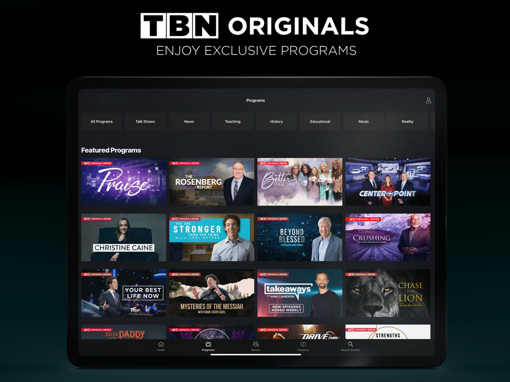 TBN is the world’s largest Christian network & America’s most watched faith and family channel. Join the millions watching inspiring content for FREE: stream live TV, or watch uplifting movies, dynamic teaching and original series for all ages.
