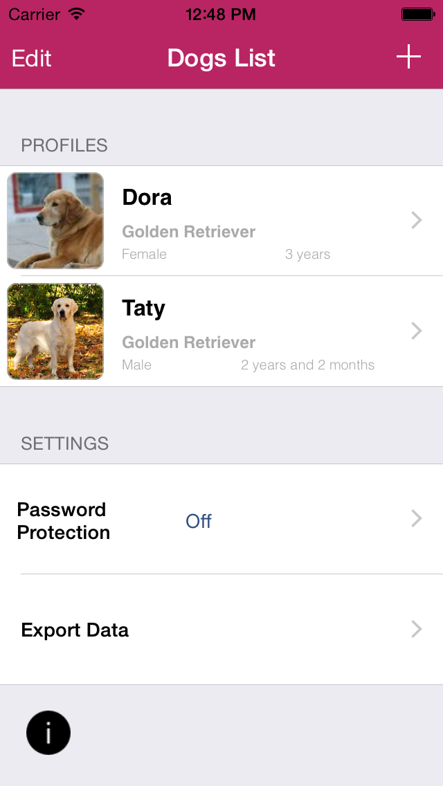 Dog Medical Agenda is now integrated with Dog Medical Agenda for iPad and Dog Medical Agenda for Mac (find it on the Mac App Store). Press a button and export your data on a .dogmedicalagenda file that can be reimported into any of your copies of Dog Medical Agenda, Dog Medical Agenda for iPad or Dog Medical Agenda for Mac. Please, feel free to contact us for additional information.