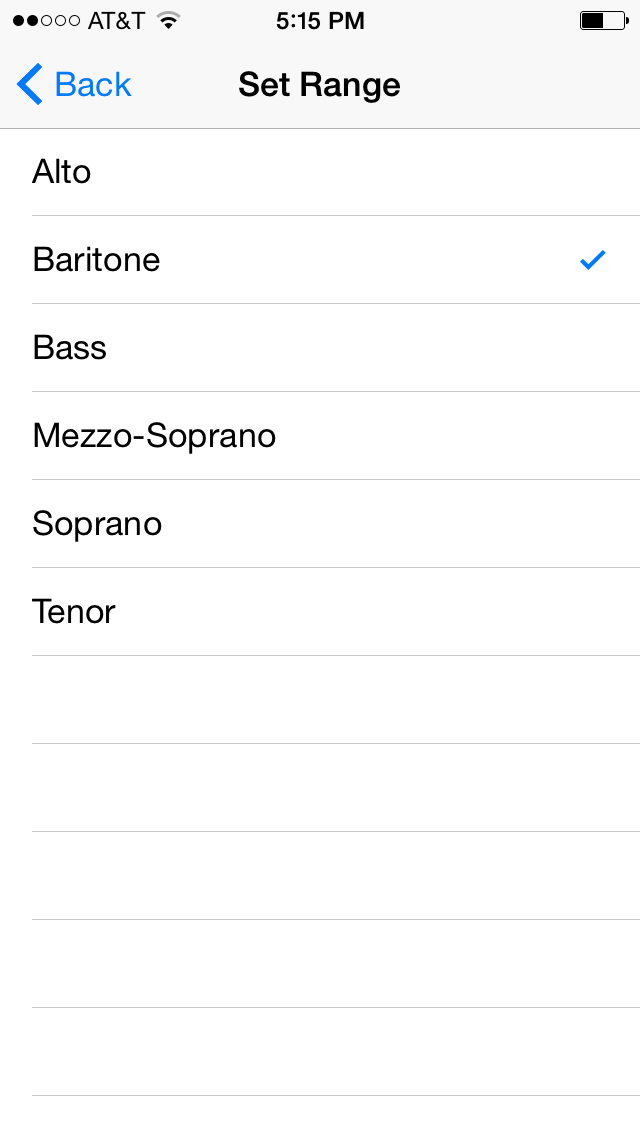 - Work in your range only. Choose from Bass, Baritone, Tenor, Alto, Mezzo-Soprano, Soprano