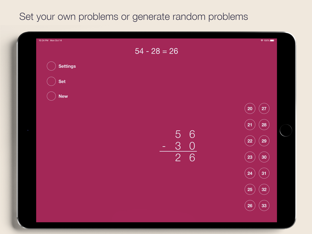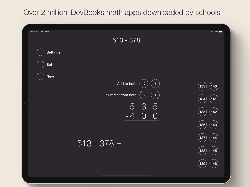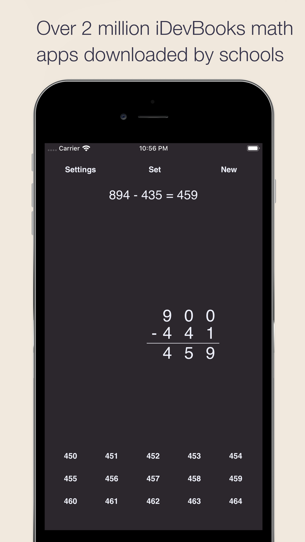 Some of the over 40 other iDevBooks math apps are Visual Multiplication Table, Decimal Rounding, Whole Number Rounding, Column Subtraction, Column Addition, Long Division, Long Multiplication, Lattice Multiplication, Fraction Math, Partial Differences Subtraction, Partial Quotients Division, Partial Sums Addition, etc.