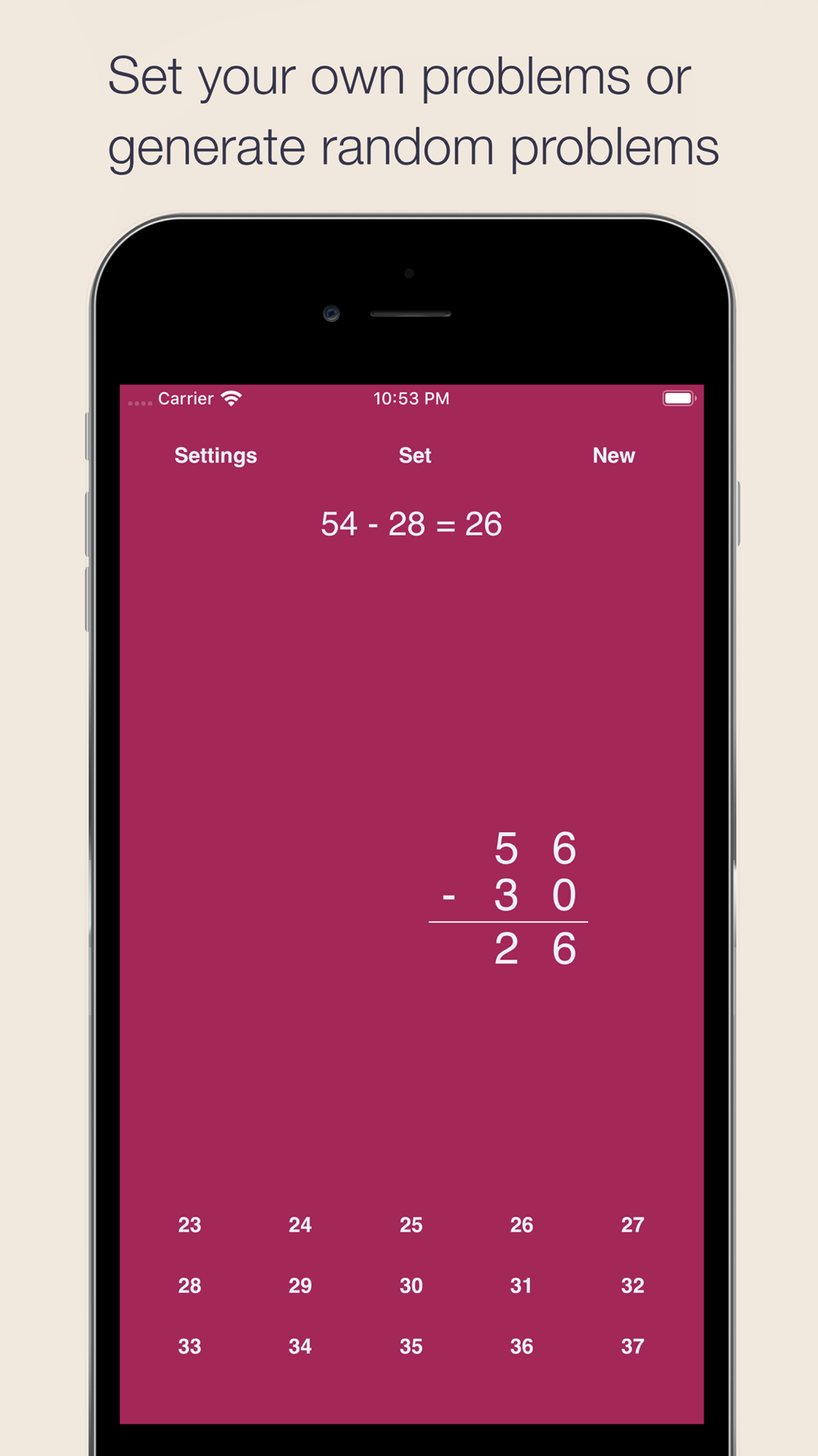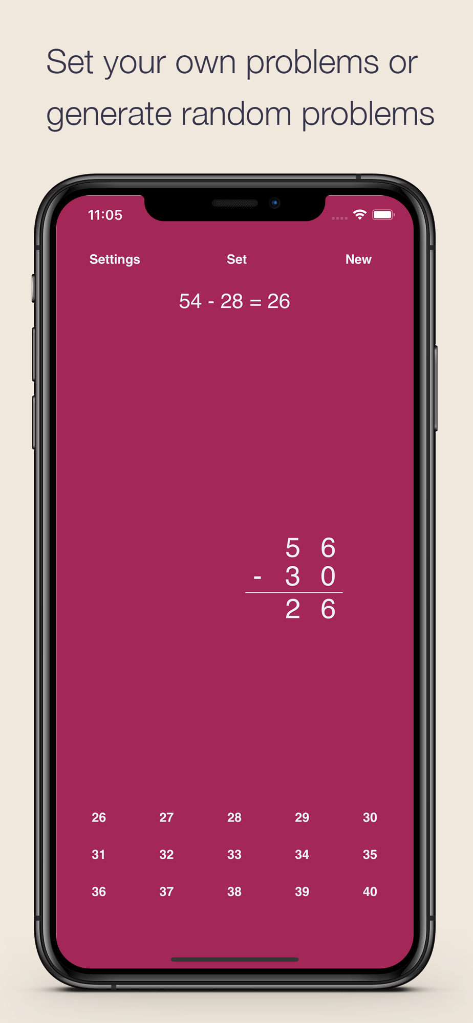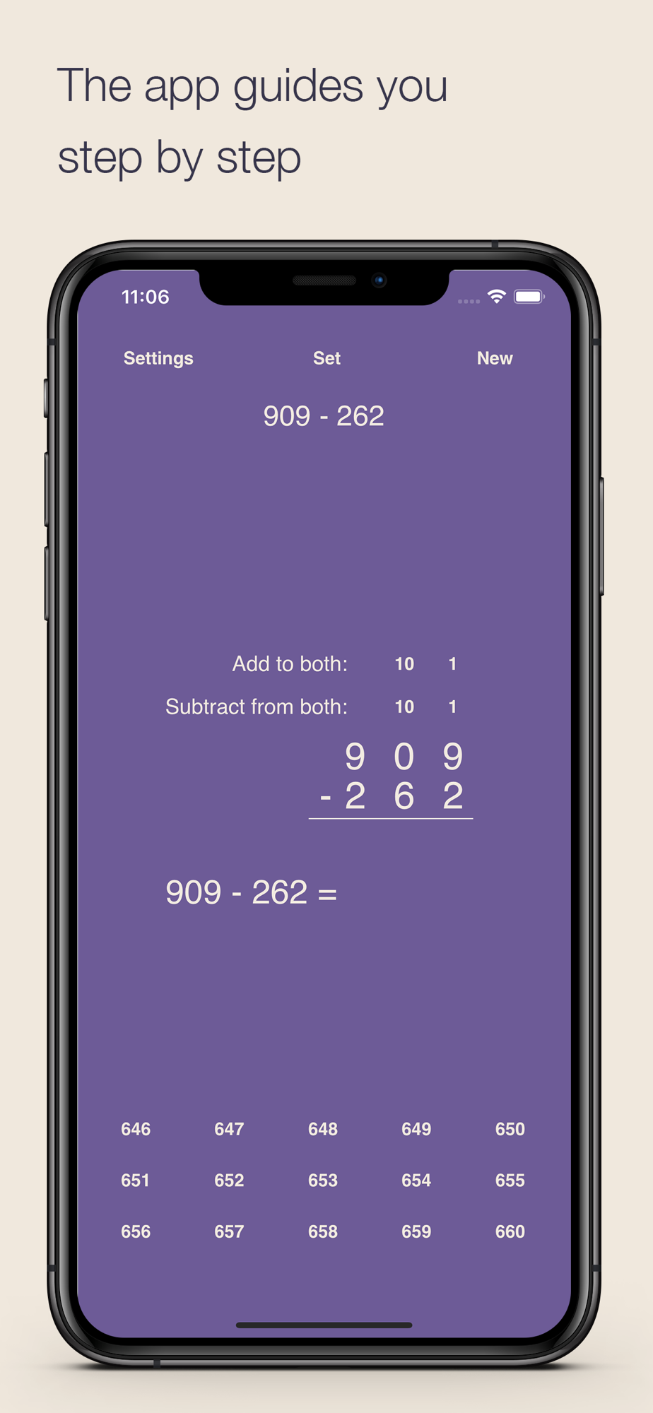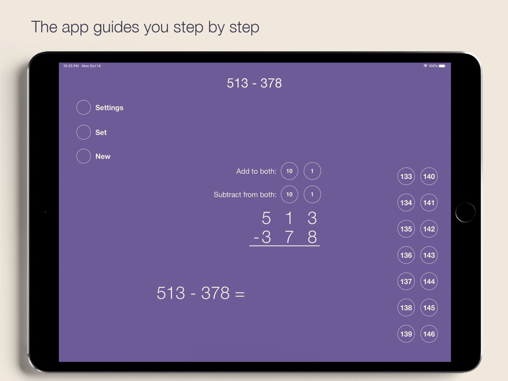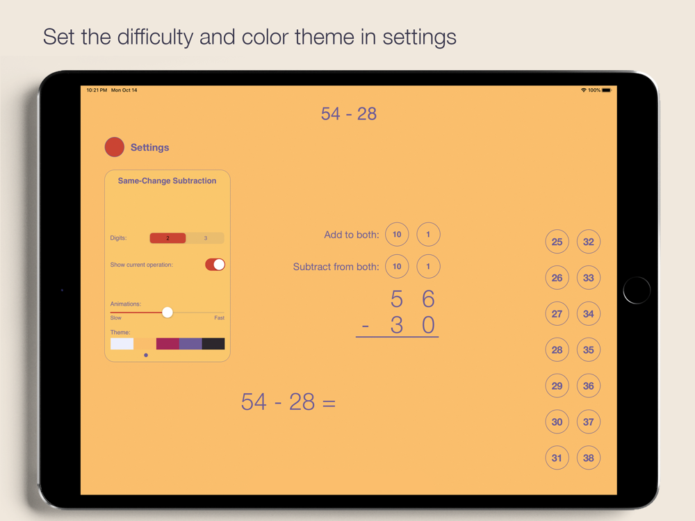 In the Same-Change Subtraction app the user can keep adding or subtracting the same amount from both numbers until the subtraction problem can be solved easily.