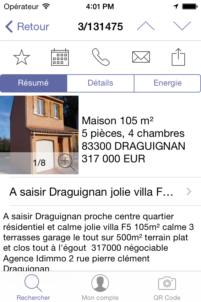Recherchez et trouvez tout de suite votre futur(e) maison ou appartement depuis votre iPhone et contactez l'agence pour visiter le bien.