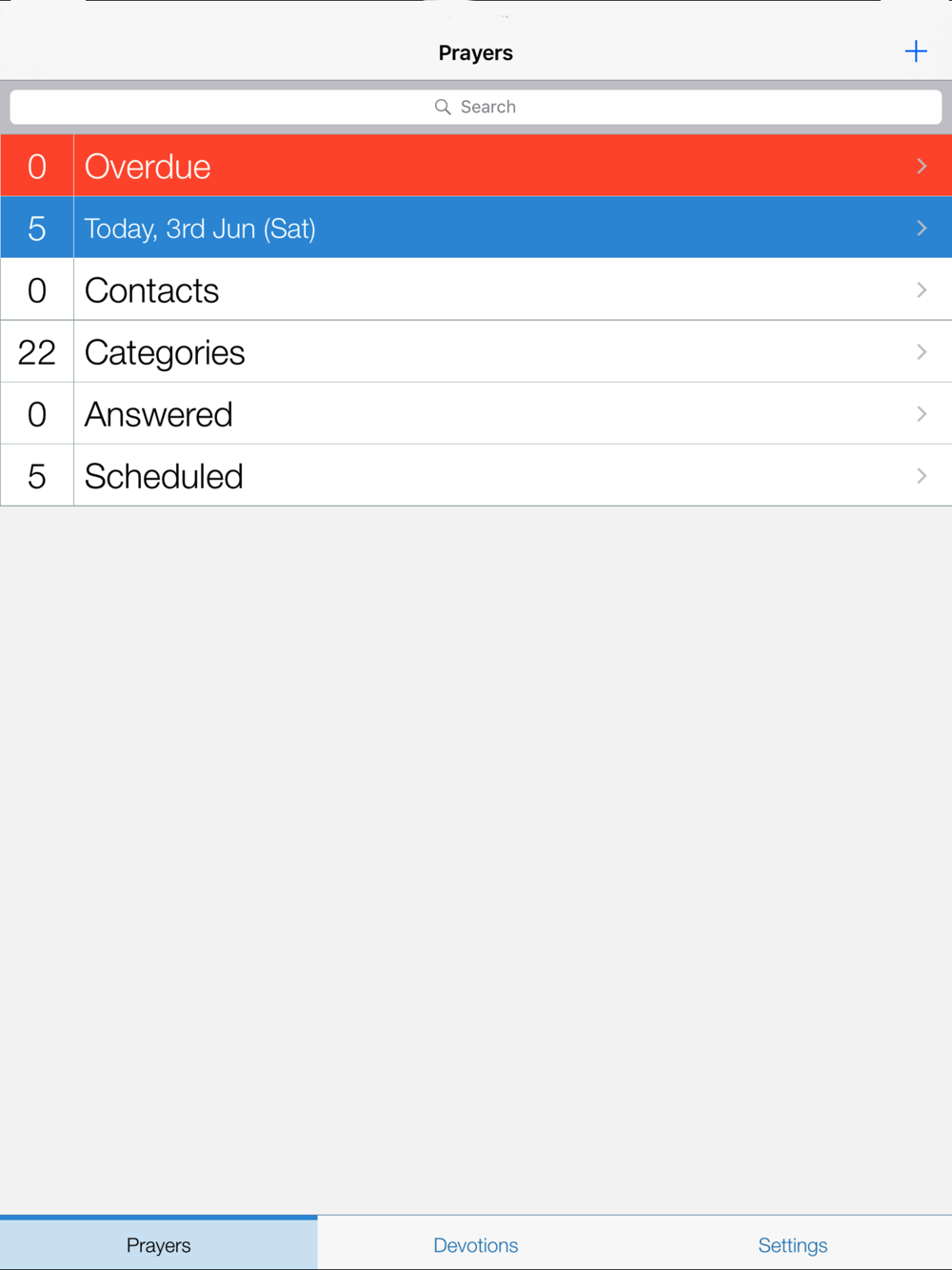 - 6 types of summary of prayer request(Overdue, Today, Contacts, Categories, Answered, Scheduled)