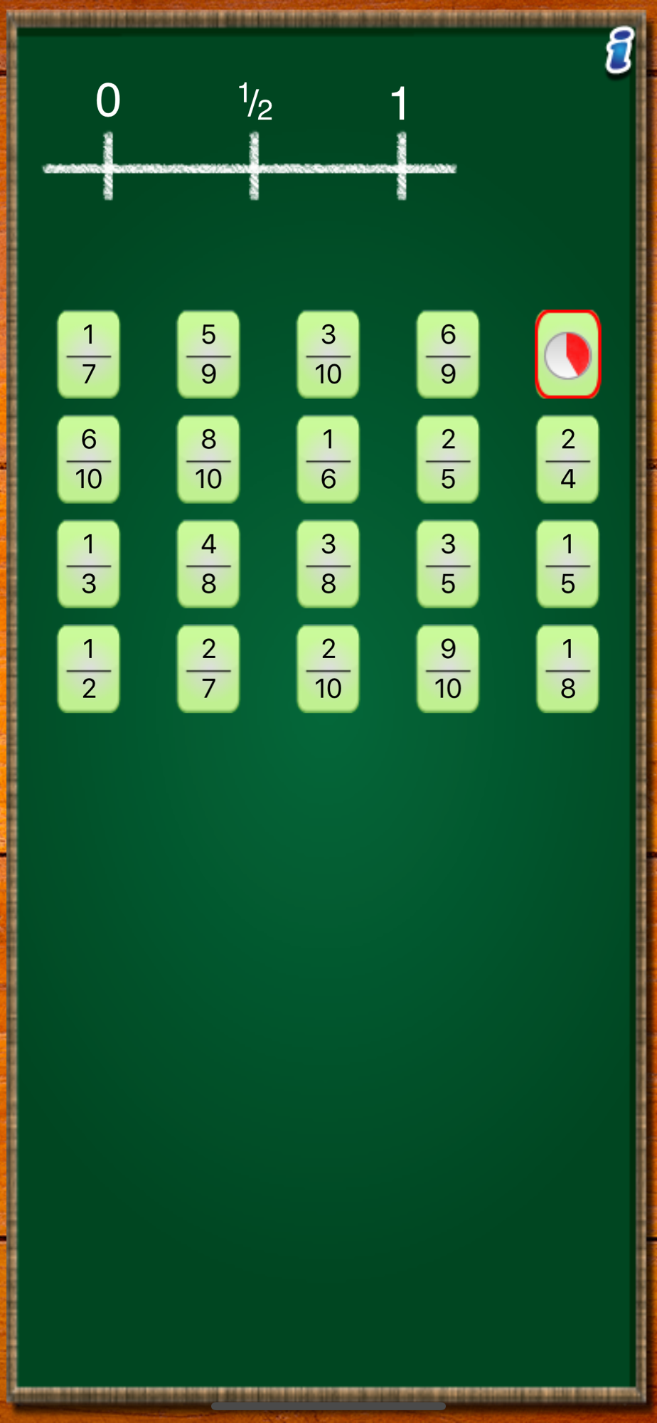 This app is not intended to be mastered in one shot – rather levels should be assigned judiciously to support classroom learning activities. After introducing each fraction idea (fraction estimation, and estimation of sums and differences) in a classroom presentation, explanation or discussion this app may be used in small group and individual activities to support exploration, sense-making, consolidation and remediation.