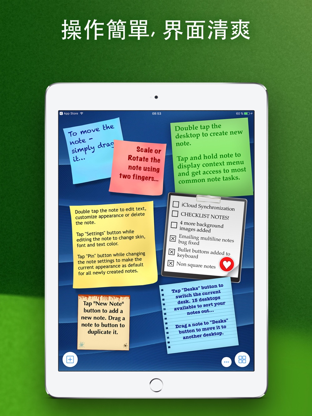 筆記列表不再枯燥 – abcNotes可以讓您在iPhone,iPad或iPod Touch上做最具真實感的筆記。把您需要記住的一切放在abcNotes吧! 隨時隨意查看筆記! 還能將您的abcNotes旋轉成任何角度!