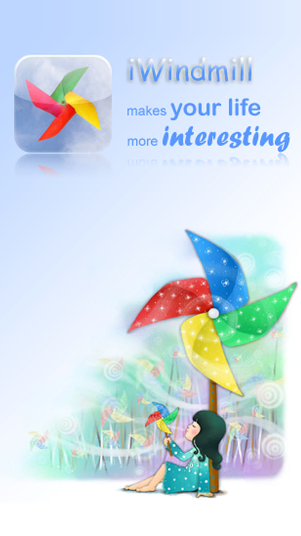 Welcome to the iWindmill experience. This small application will bring you a funny windmill toy, just like a real life one in your hand.
