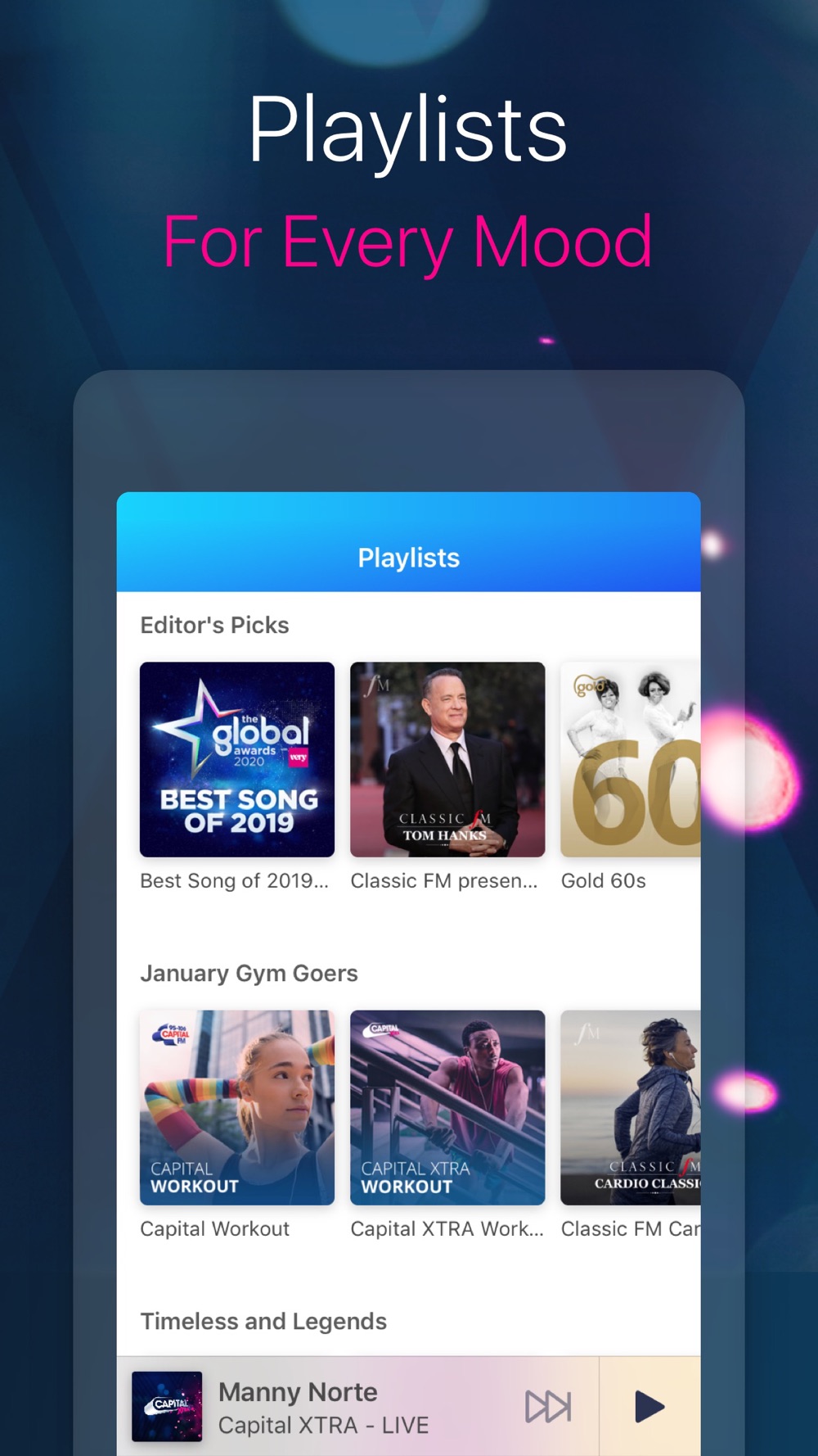 With the Capital XTRA app you can also enjoy all of Global's other stations: Capital FM, Classic FM, Heart, LBC, Radio X, Smooth and Gold.