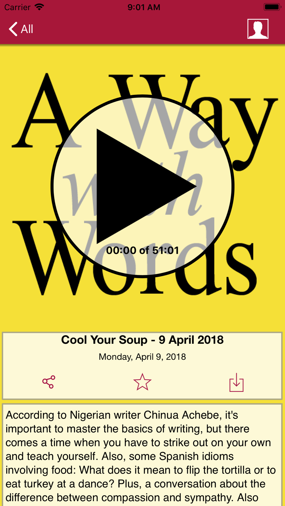 This is the most convenient and reliable way to access "A Way with Words" on your iPhone, iPod Touch, or iPad. You're always connected to the latest episode. Instant access, just touch and play!