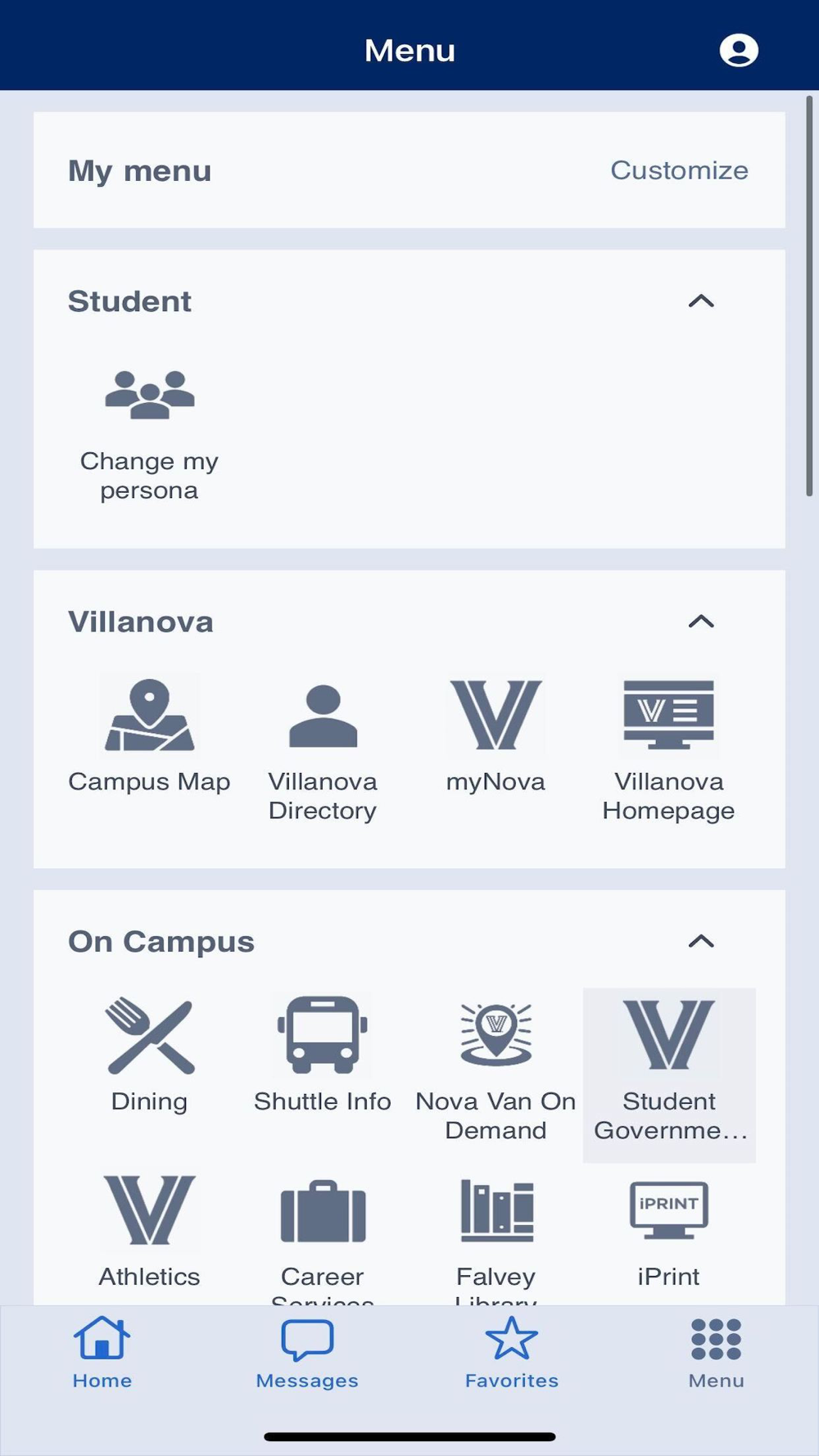 Nova Now puts Villanova in the palm of your hand. A number of design, content and functional enhancements allows you to check your classes and course rosters; find open dining halls on campus and view what is being served; search for events; view lectures; check your wildcard balance; navigate campus on the Virtual map and much more! From campus events to coursework, stay up to date with everything that is happening at Villanova University with Nova Now.