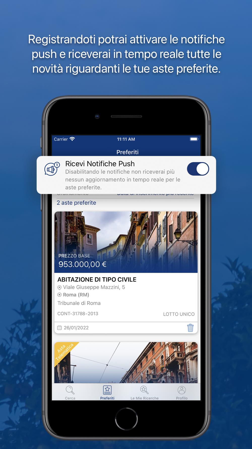 • Registrati e salva nella tua area riservata le aste di tuo interesse e le tue ricerche preferite per ritrovarle quando vuoi;