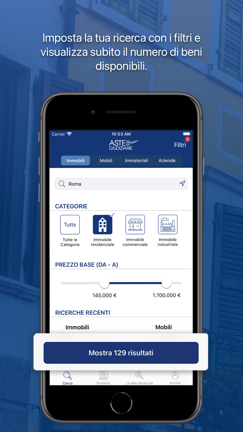 • Ricerca veloce dei beni, con possibilità di applicare i filtri per ubicazione, parole chiave, categoria e fascia di prezzo;