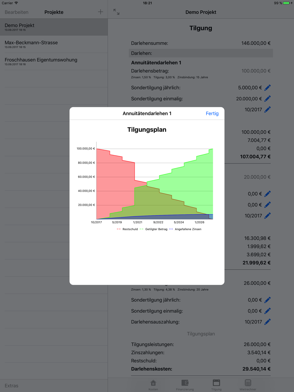 ... einen detaillierten Tilgungsplan (tabellarisch oder graphisch) über die gesamte Laufzeit einsehen?