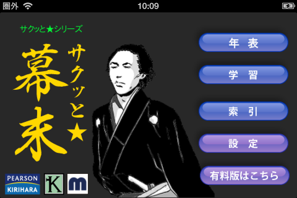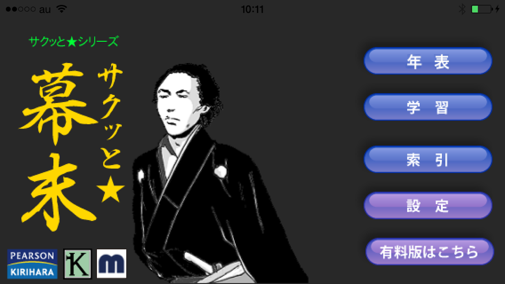 *有料版「サクッと近現代」には、ランダム出題や成績、索引などプラス機能も搭載。こちらの幕末も含め、近現代史全般を網羅したパワフルアプリです。スクラッチ学習が気に入った方は有料版にもトライ