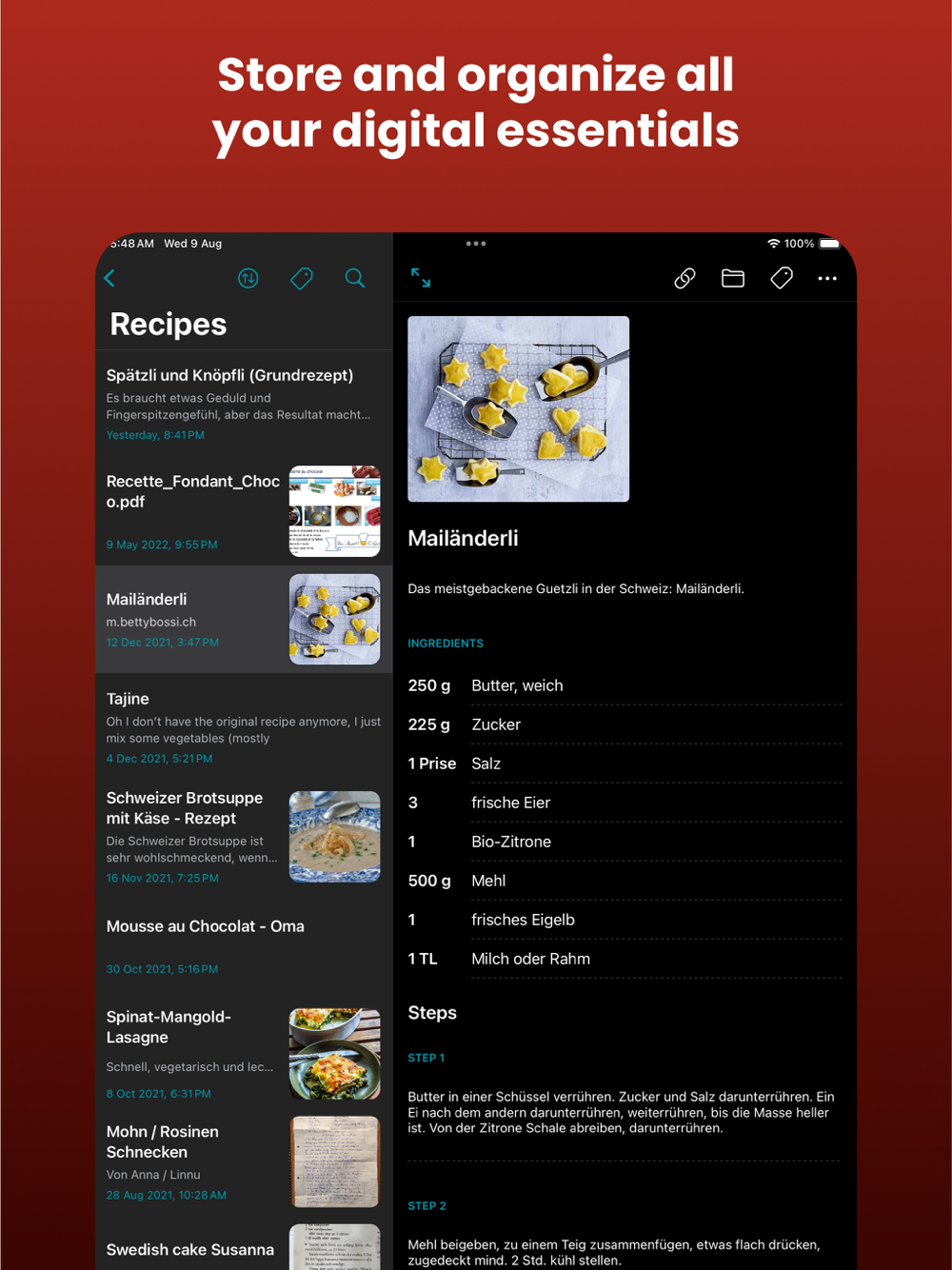 Imagine having all your crucial information at your fingertips, neatly arranged in folders and subfolders and labeled with tags. Shortcut lets you create a structured ecosystem, making it a breeze to store and retrieve anything from grocery lists and user manuals to recipes and wish lists. No more digging through endless files or searching through cluttered notes; with Shortcut, your information is accessible with just a few taps - just like a Swiss army knife.