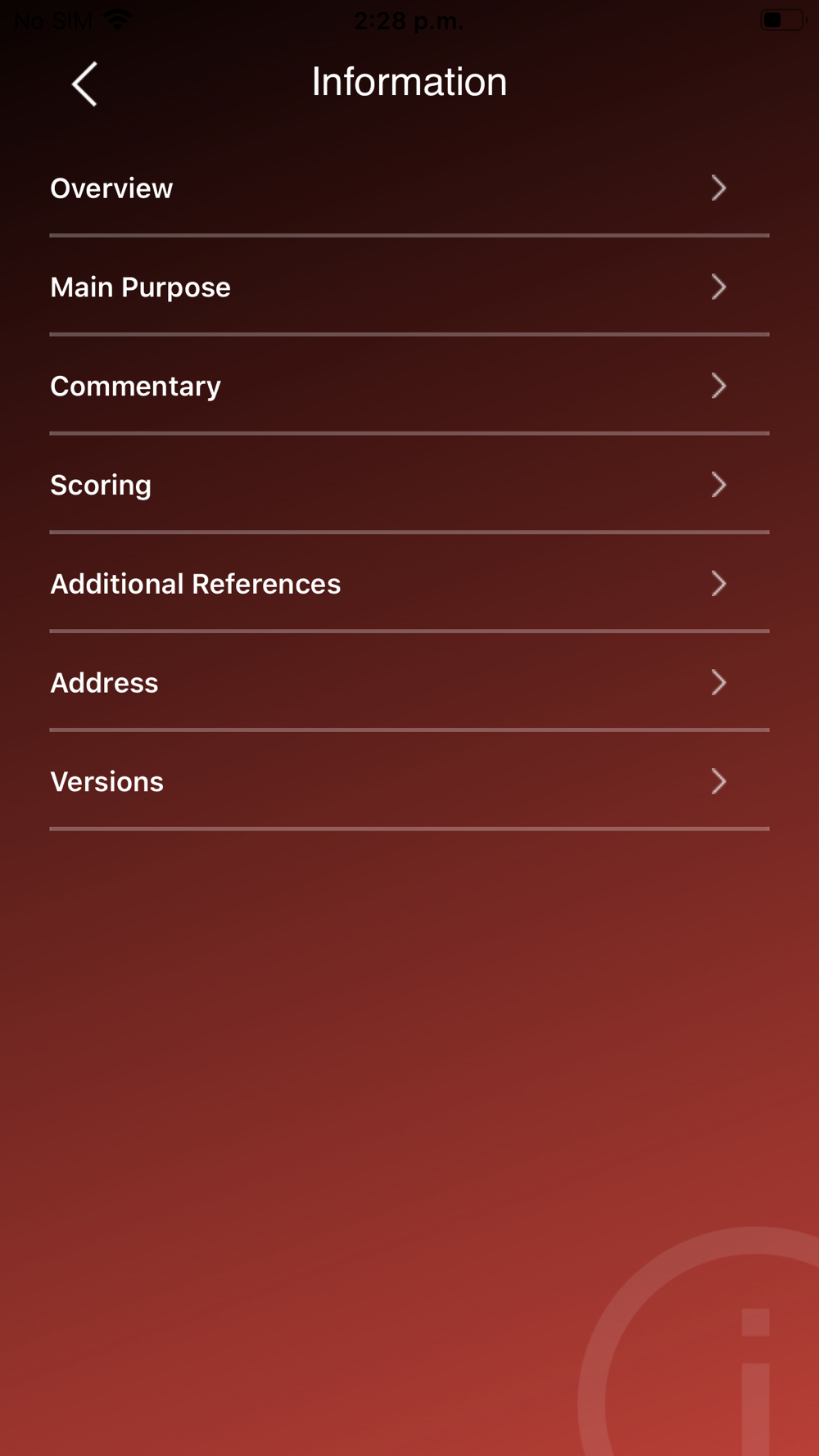To assist the Medical Practitioner, each scale has not only an exact Scoring system (with accompanying Alerts, Advice and Suggestions) but a comprehensive Information section that provides relevant background details.