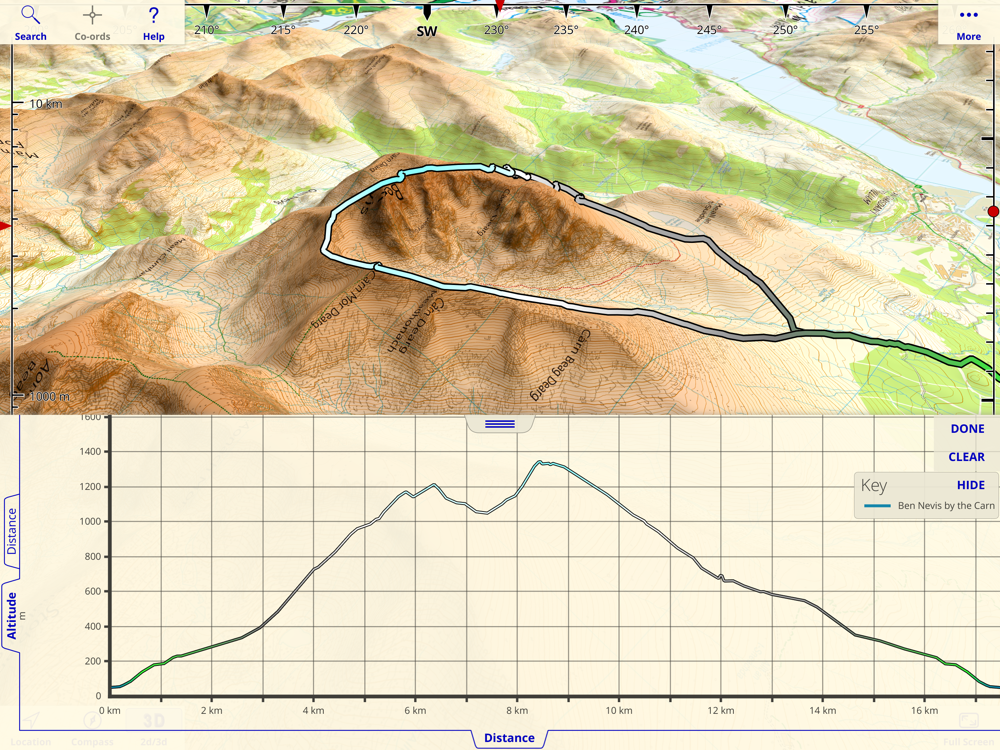 The app has a 3D mode that lets you view the terrain from any viewpoint, useful for visualising hills and mountains.