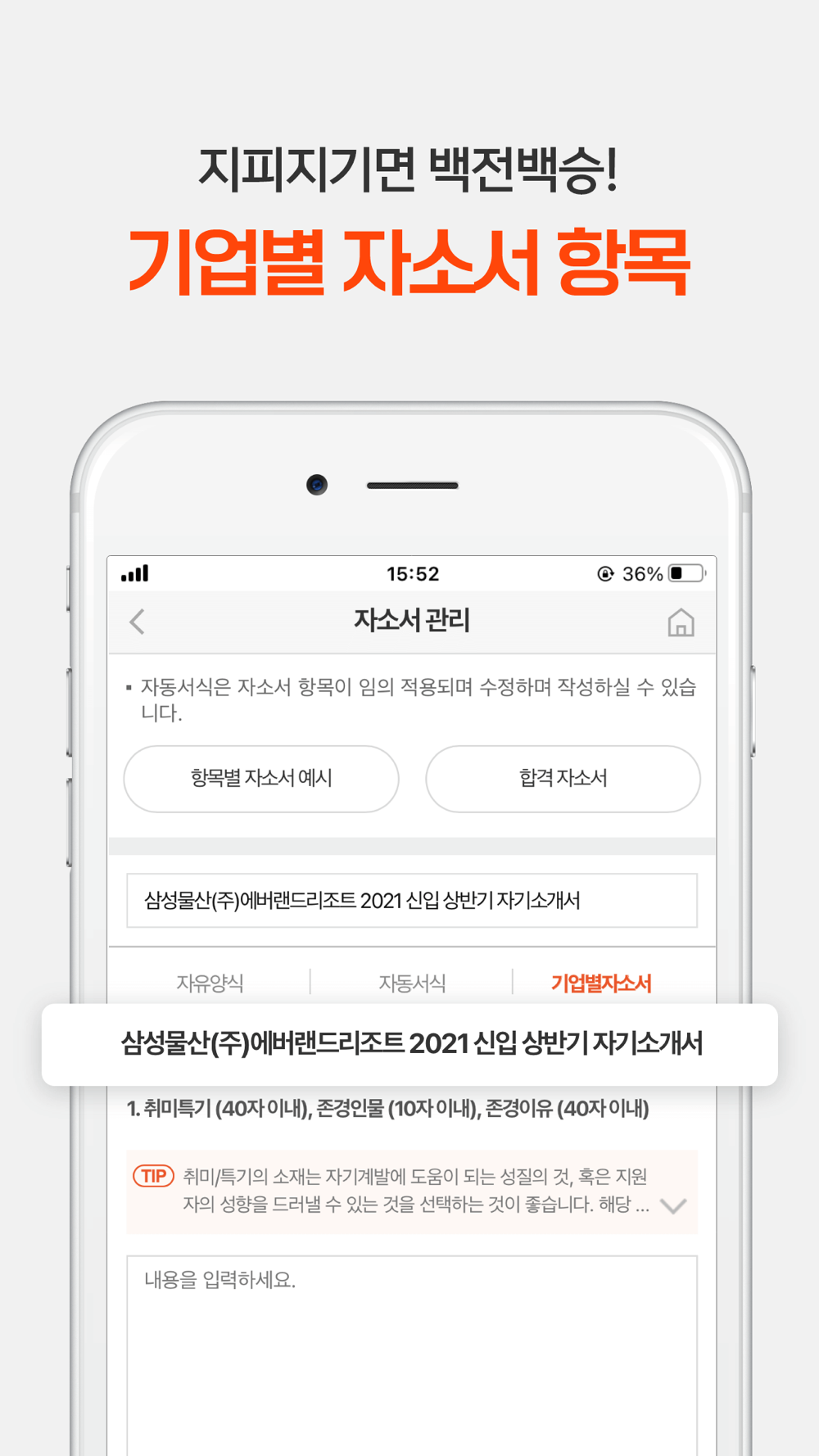 - 모바일로 이력서 작성부터 입사지원까지 앱만으로 한번에!