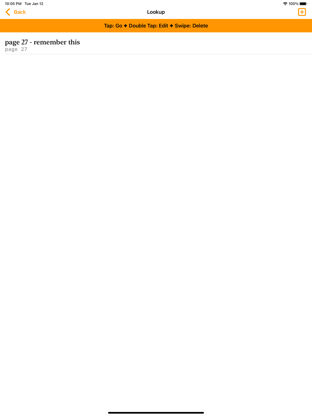 Remembers your place in the book. Tap on 'Bookmarks' icon to jump to your personal bookmarks.