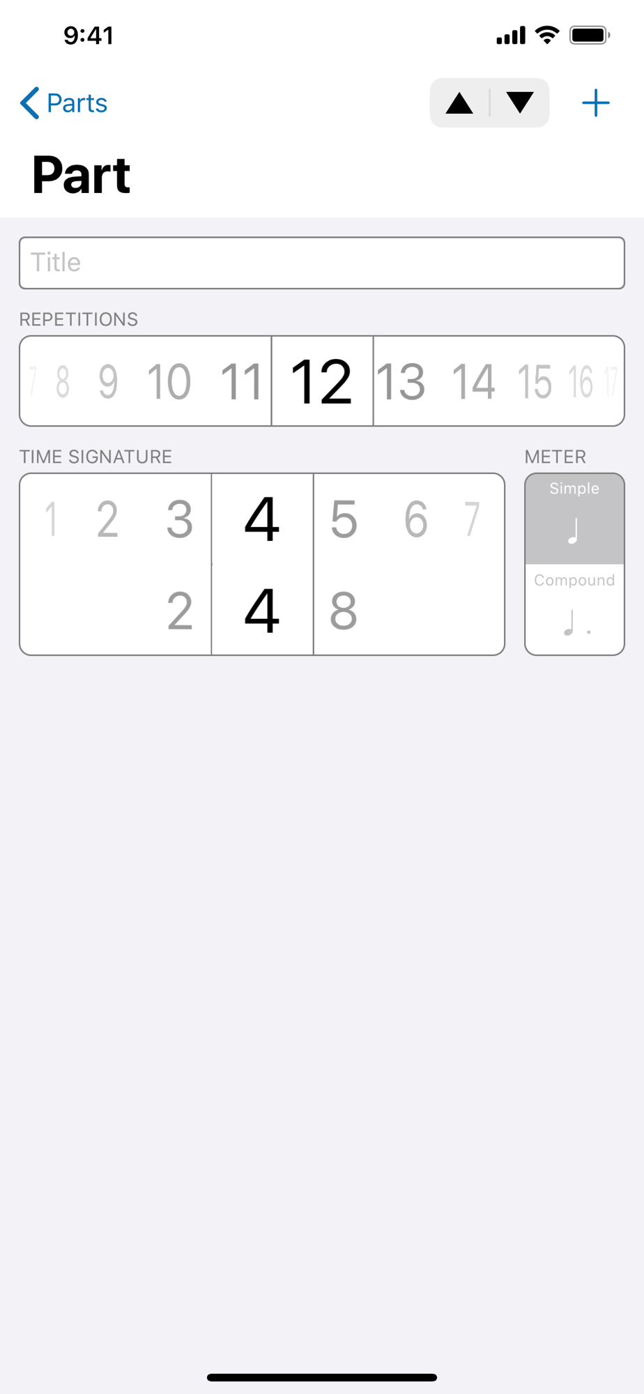 A song is made up of parts that have a time signature and a number of repetitions. Each part may also include a tempo change.
