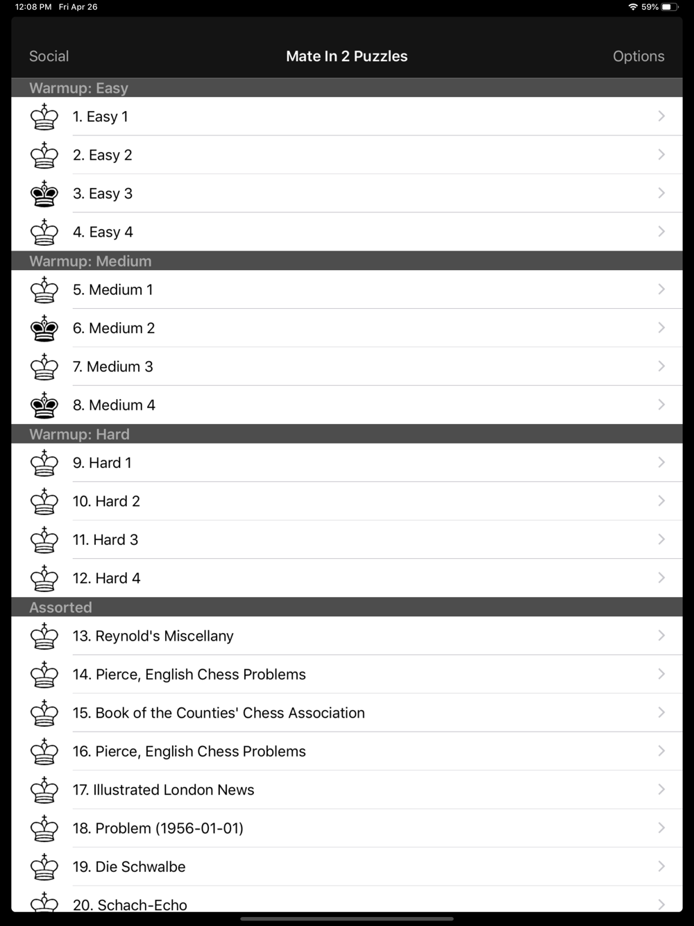 This app has over 1200 interactive chess problems ranging from easy to harder puzzles that will challenge you and help improve your chess skills. The object is to finish each game by forcing a checkmate in 2 moves. The puzzles consist of a large number of classical puzzles collected from a variety of sources. These puzzles are fun to play and can be enjoyed at your leisure on your iPhone, iPod touch, and iPad.