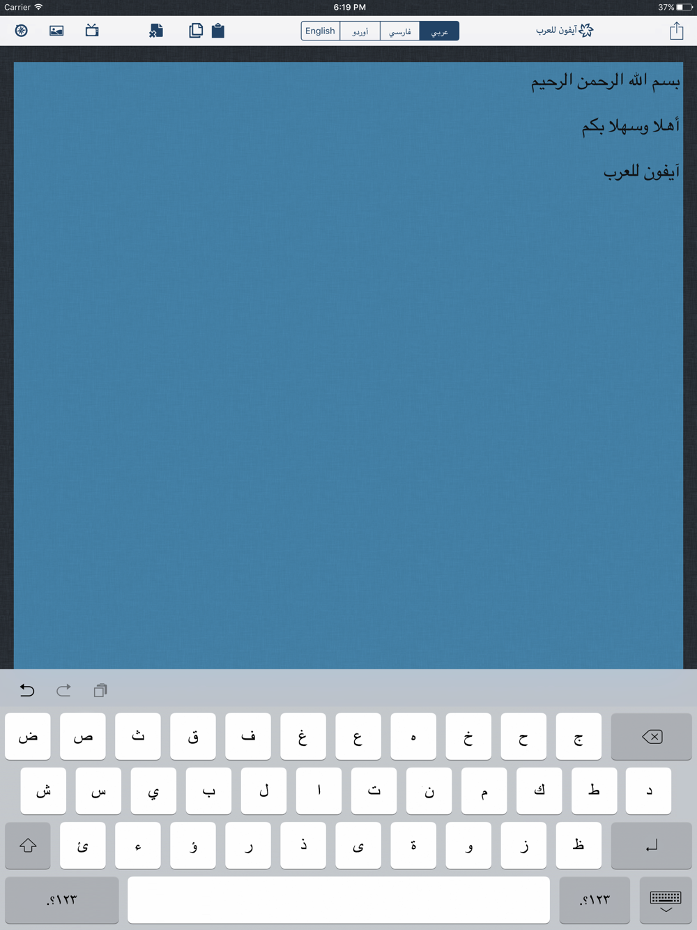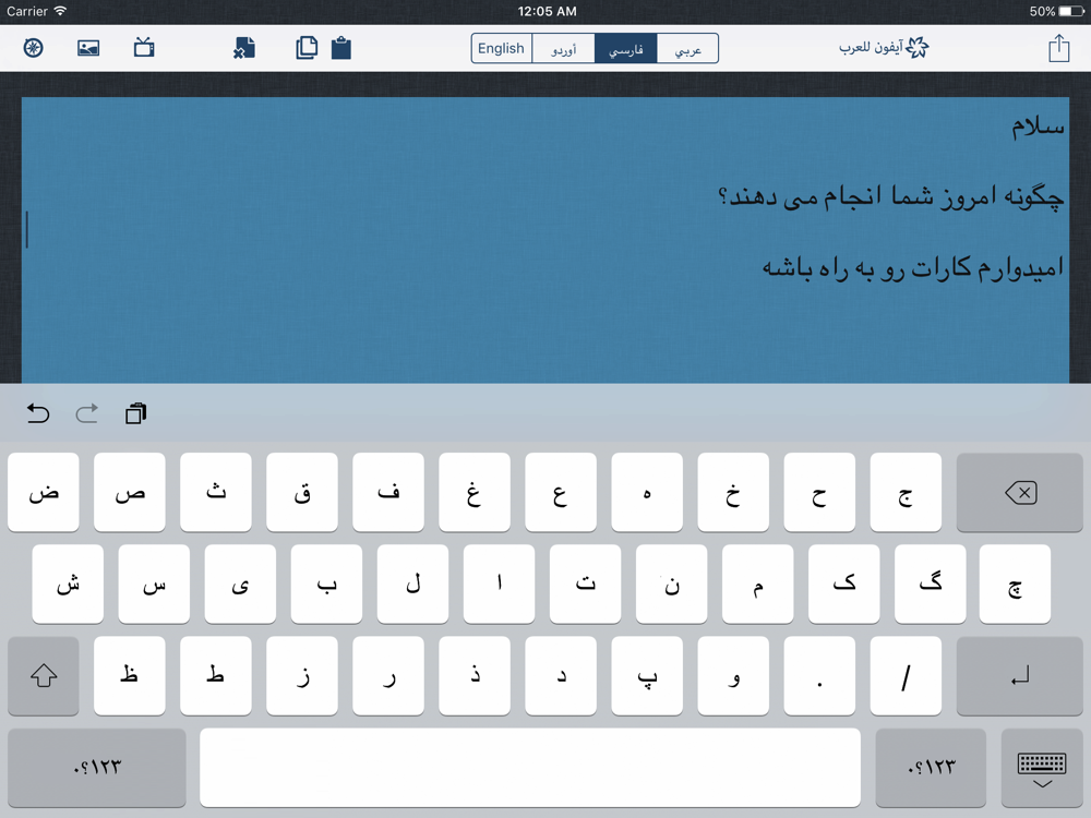 ~ Arabic, Persian, and Urdu keyboards for iPad. All in one app.