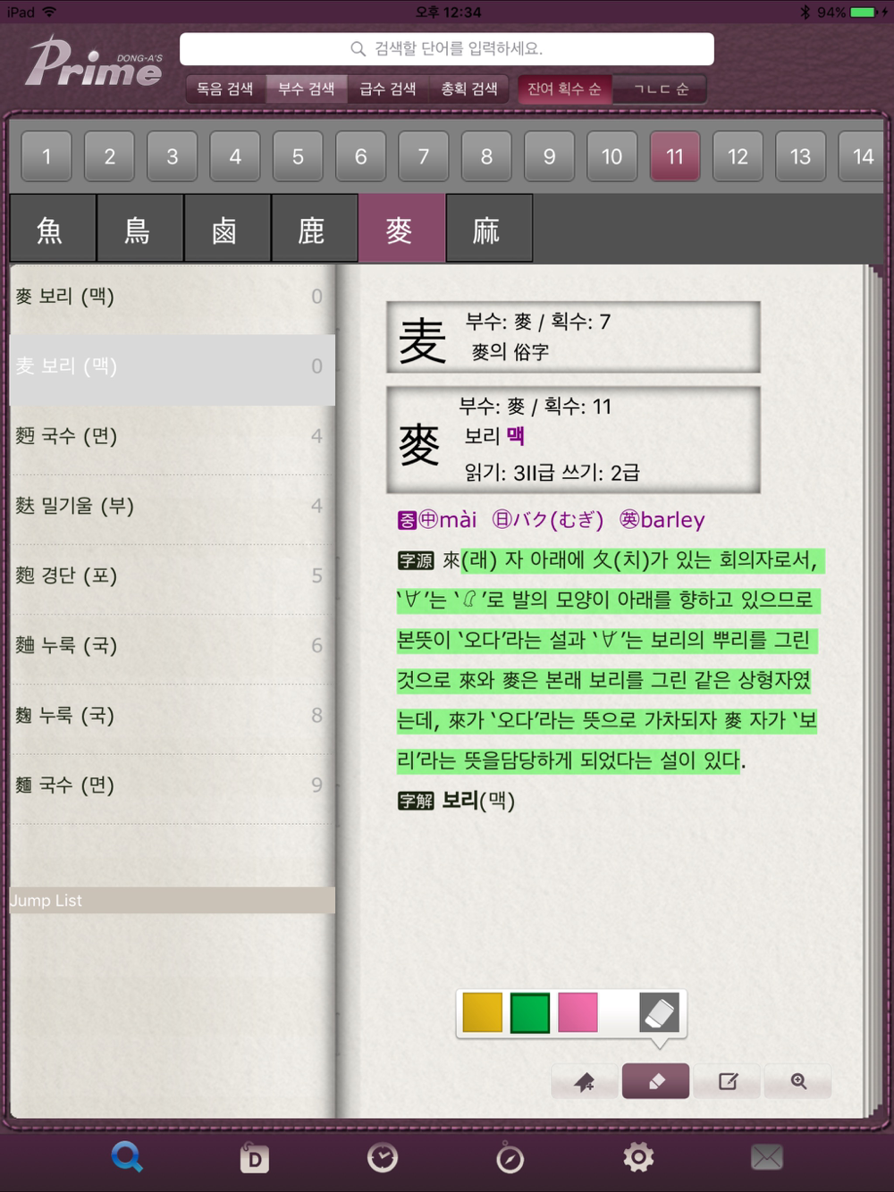 ▶[강력한 검색 방법] 독음, 부수, 급수(한국어문회/상공회의소), 총획 등 다양한 방법으로 검색 가능
