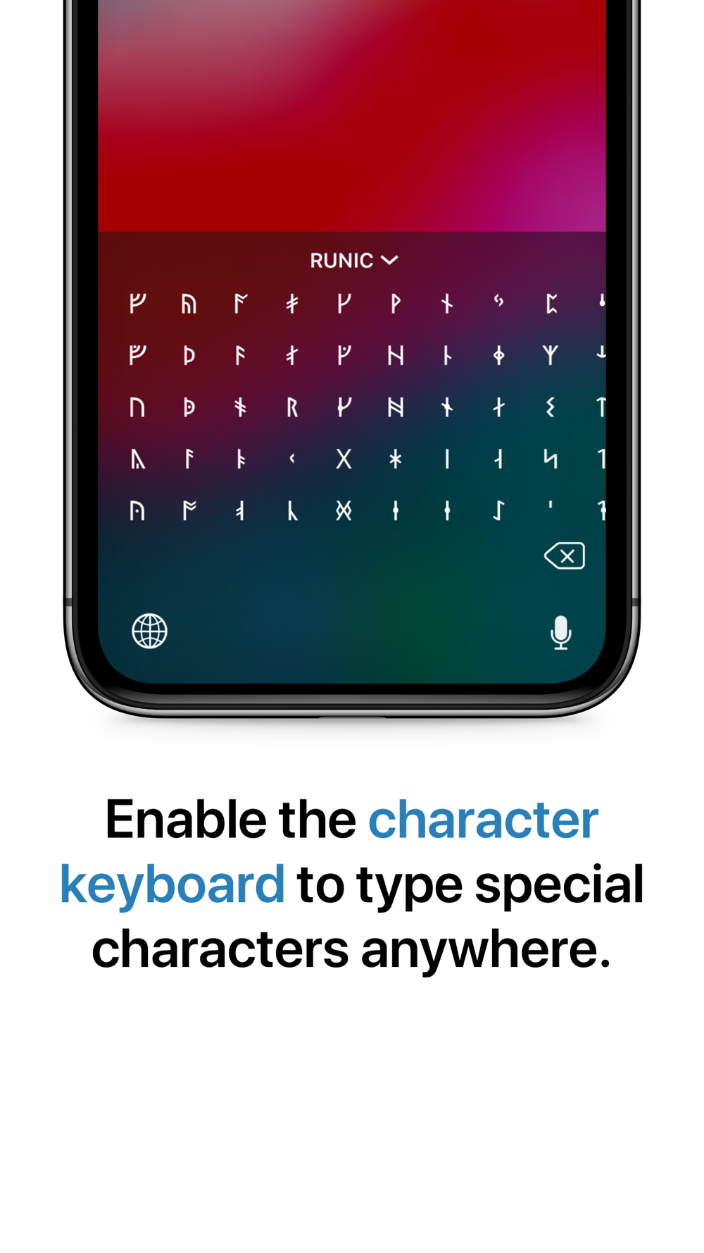 Enable the character keyboard to insert characters wherever custom keyboards are supported.