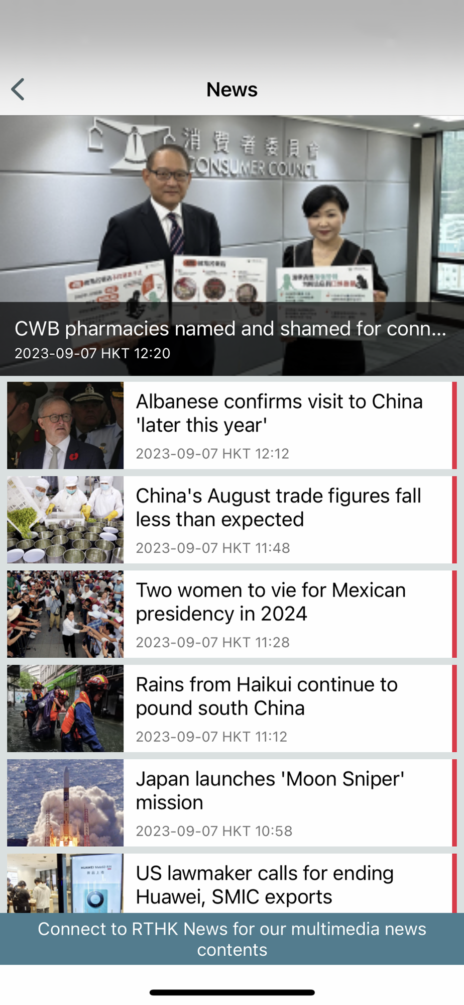 2) Latest News – put your finger on the pulse of what's happening around the world by RTHK latest news (text and photo). Connect to “RTHK News” for our multimedia news content.