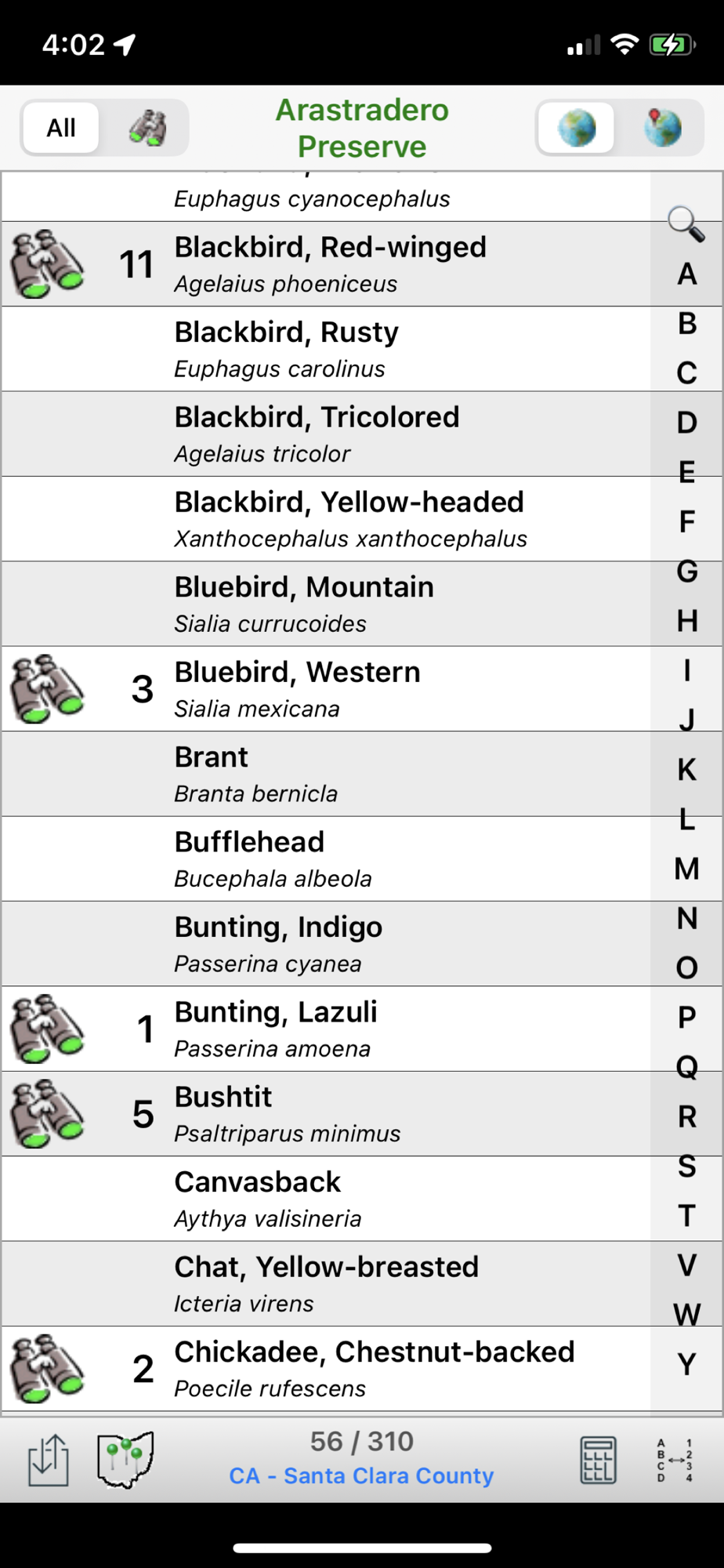 • Quickly switch between viewing all birds, sighted only, or not seen yet
