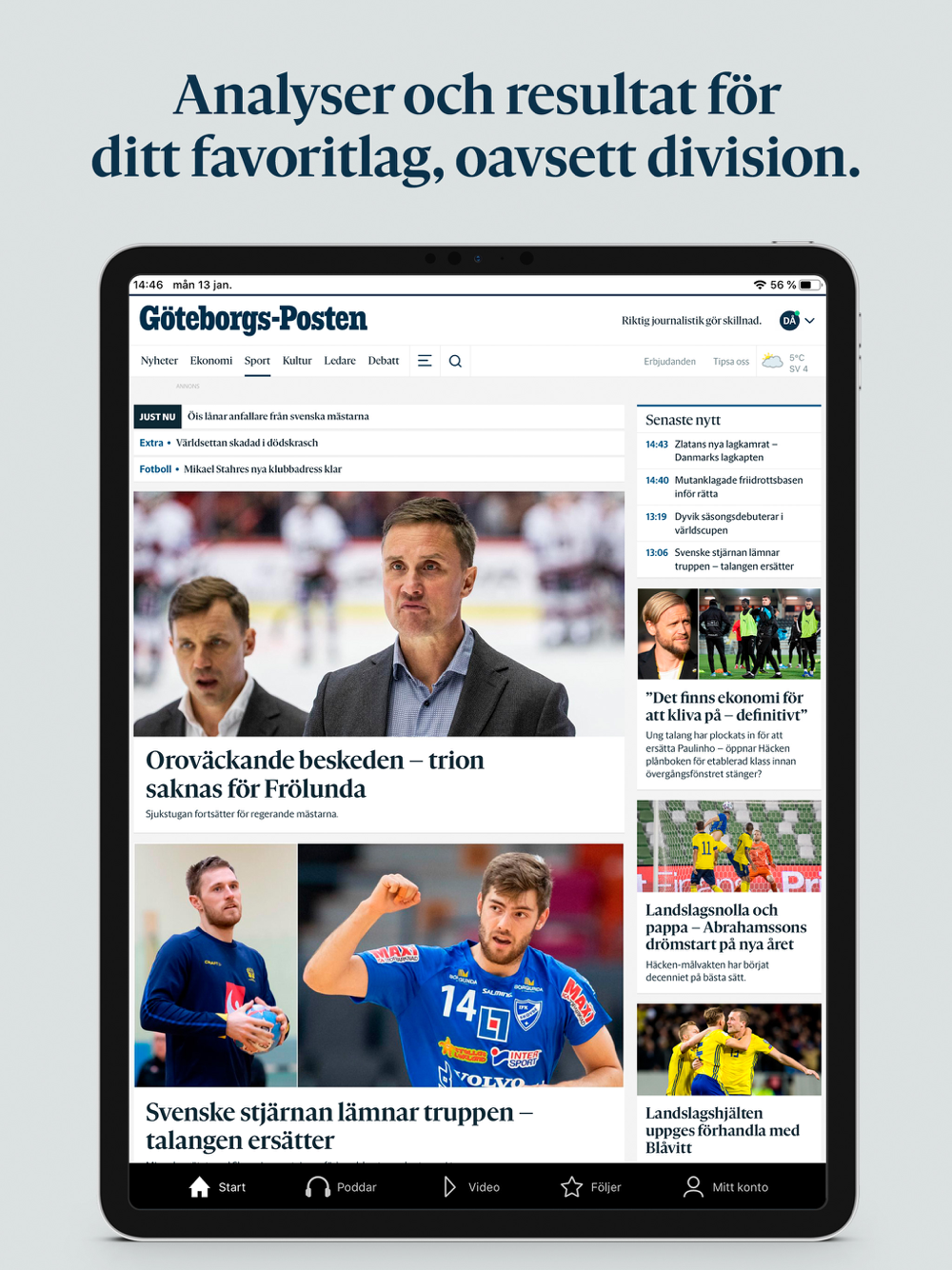Oavsett om du känner för att läsa, titta eller lyssna har Göteborgs-Posten något för dig. Titta på de senaste nyhetshändelserna med GP TV, lyssna på någon av våra poddar eller träffa våra journalister på GP Live.