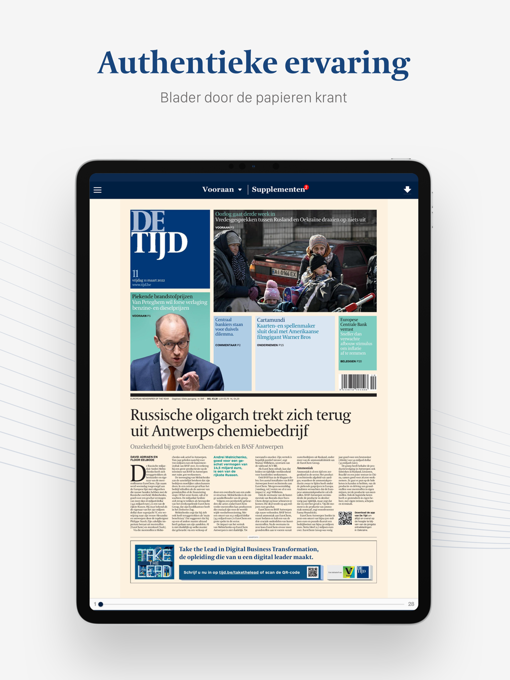 De Tijd is dé referentie voor betrouwbaar politiek, economisch en zakelijk nieuws. Zorg dat u altijd als eerste op de hoogte bent van het belangrijkste nieuws dankzij onze app.