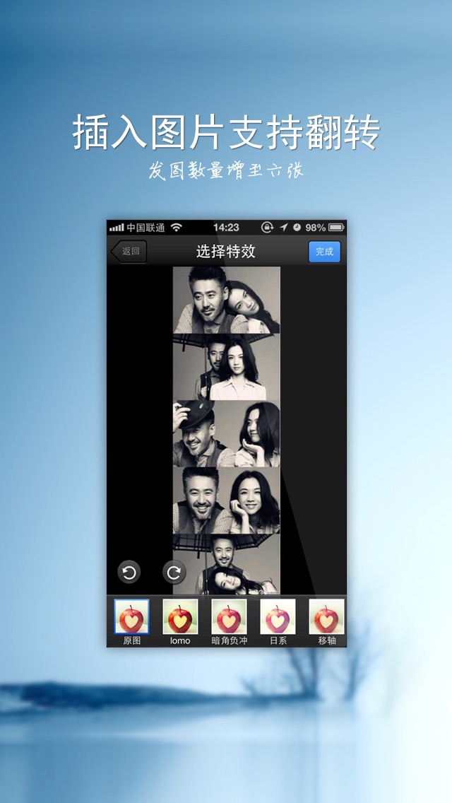 - 十余款绝美的照片滤镜,你喜欢老照片的昏黄还是阳光的明媚?随时拍,随时生成最满意的图片,随时分享给自己的粉丝。