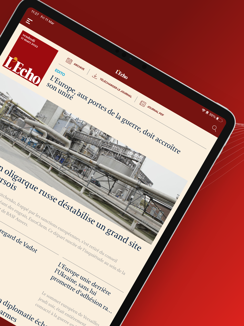 Les lecteurs qui s'enregistrent pour la première fois bénéficient d'un mois d'accès gratuit à l'application complète de L’Echo. Vous êtes déjà abonné? Alors il vous suffit de vous enregistrer avec votre adresse e-mail et de commencer à lire nos articles et nos analyses approfondies sur la politique, l'économie, les affaires, la technologie et la finance.