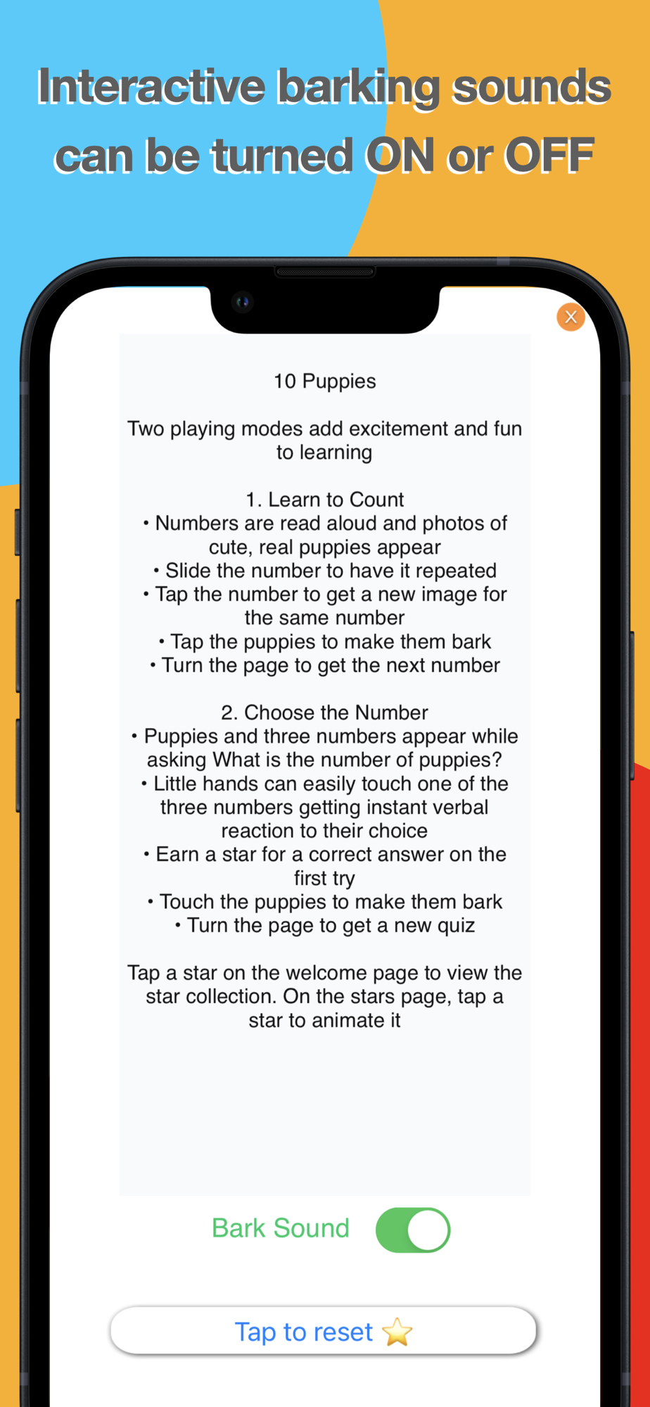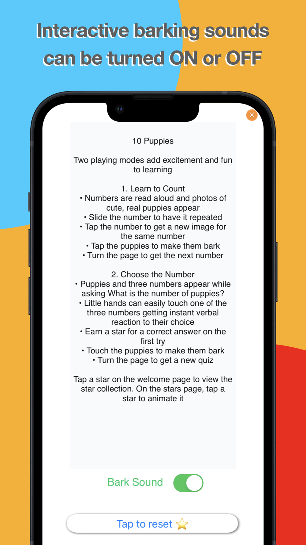 10 Puppies – An adorable app that is both educational and fun! 10 Puppies is a talking app in English, French and Spanish with beautiful images of puppies that facilitates learning the counting sequence up to ten. The app is designed to help children learn to recognize, distinguish and identify the corresponding numbers. There are several interactive elements that reinforce learning and maintain your child’s interest.