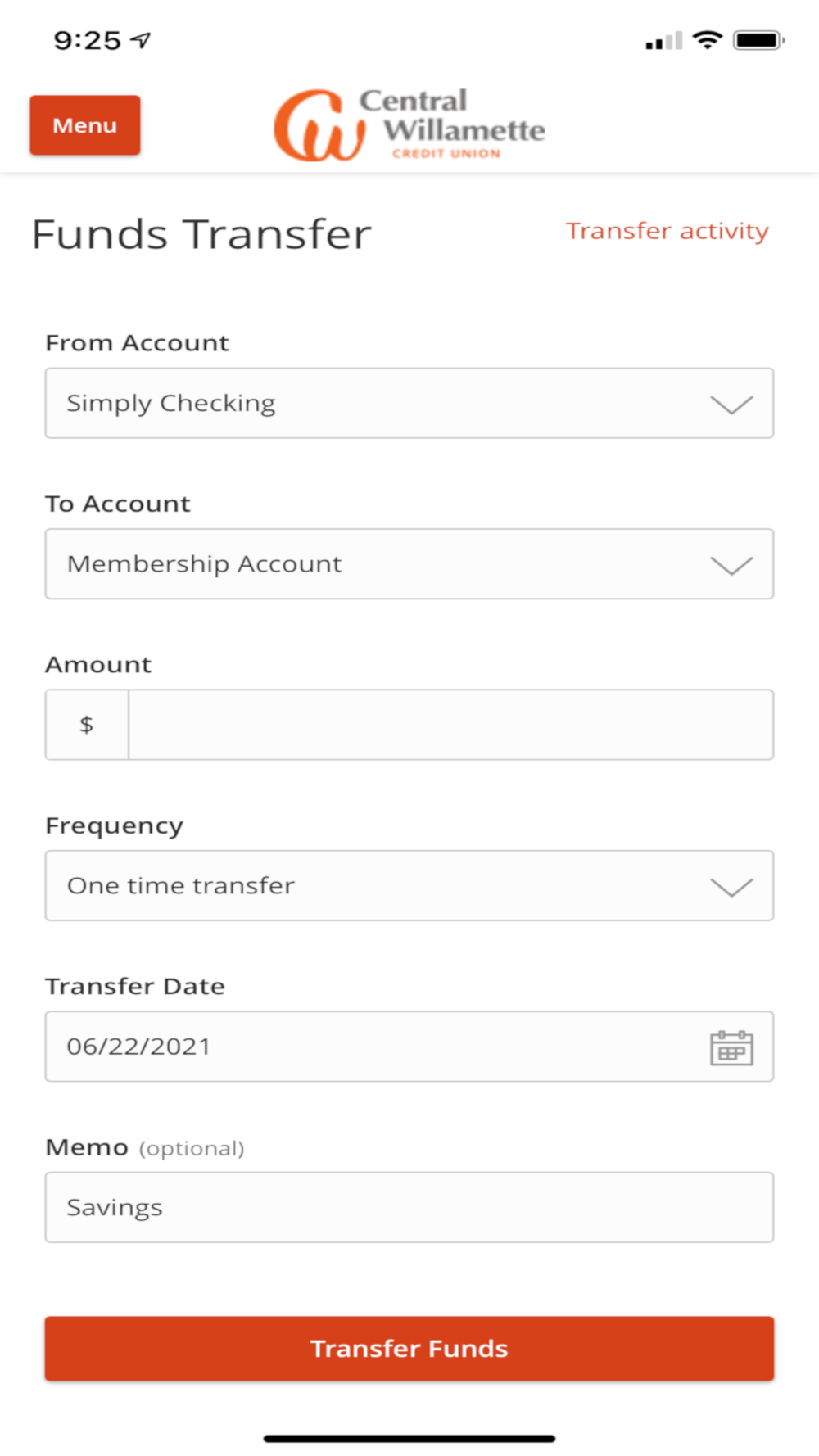 - Loan Payments: Use the Transfer Money button to make loan payments on your Central Willamette loans.