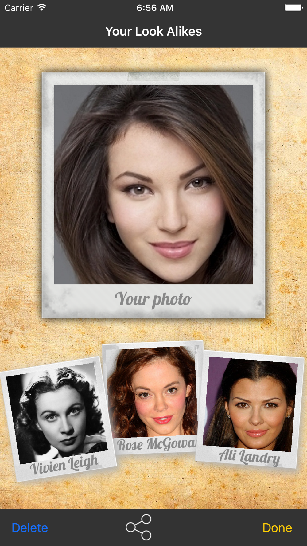 ‘OMG! I’m look alike superstar!’ Do you want to see, who you look alike? It can be famous actor, singer, model, athlete, politician, writer, musician, etc. Just take a photo or choose one of your pics and the application Сelebtwin: Сelebrity Looks Like will find your famous twins. Check your friends and yourself. It’s easy, simple and fun. Enjoy and share your pic with your friends.